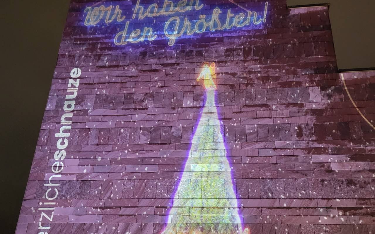 In diesem Jahr leuchtet der größte Weihnachtsbaum der Welt gleich doppelt bei uns in Dortmund. Einmal natürlich auf dem Hansaplatz, aber auch an der Katharinentreppe. Projektoren werfen jeden Abend eine 3D Nachbildung des Weihnachtsbaums an die Wand der Stadt- und Landesbibliothek. Es ist das erste Mal, das der Dortmunder Weihnachtsbaum einen digitalen Bruder bekommt. Wer am Hauptbahnhof ankommt, dem leuchtet übrigens nicht nur der 3D Baum entgegen, sondern auch der passende Slogan: "Wir haben den Größten."