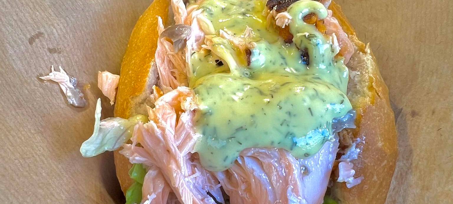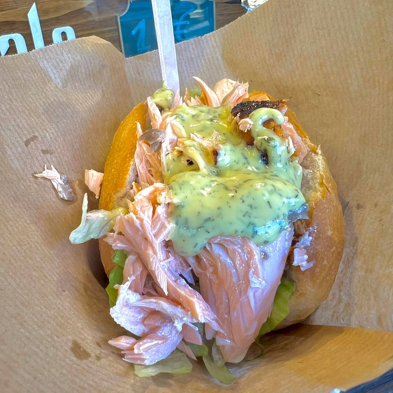 - Hauptgericht: Flammlachs-Brötchen mit Honig-Senf-Sauce