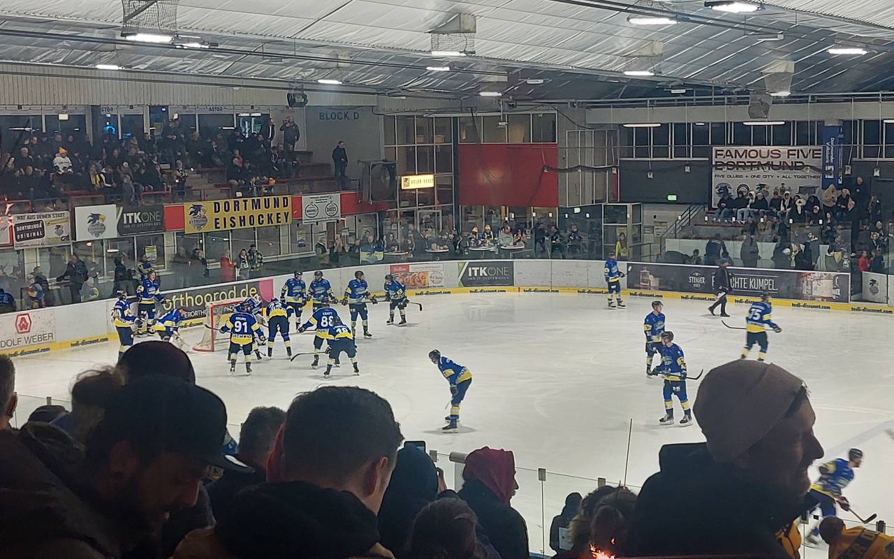 Die Eisalder Dortmund lösen gerade wieder einen echten Eishockey-Hype in Dortmund aus. Sie stehen im Finale der Regionalliga NRW und könnten in die Oberliga aufsteigen. Direkt an den Westfalenhallen Dortmund haben sie ihr Nest. In der Final-Serie stand am Samstag (16.03.) das erste Heimspiel gegen die Ice Aliens aus Ratingen an. Rund 1.600 Fans haben die Eisadler Dortmund angefeuert, mit Trommeln, Tröten und Fangesängen.