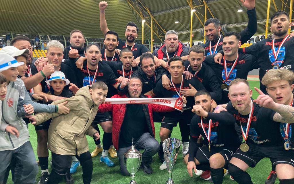 Der strahlende Sieger des Turniers: Türkspor Dortmund. Sie haben sich die Krone aufgesetzt! Die Mannschaft ging bereits als Favorit ins Finalspiel. Sie hat einfach das gesamte Turnier über dominiert - ein verdienter Stadtmeistertitel! Der beste Spieler des Turniers kam auch von Türkspor und heißt Sezer Toy. Er war richtig glücklich nach dem Sieg.