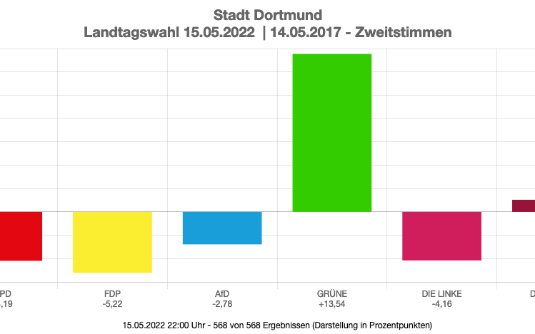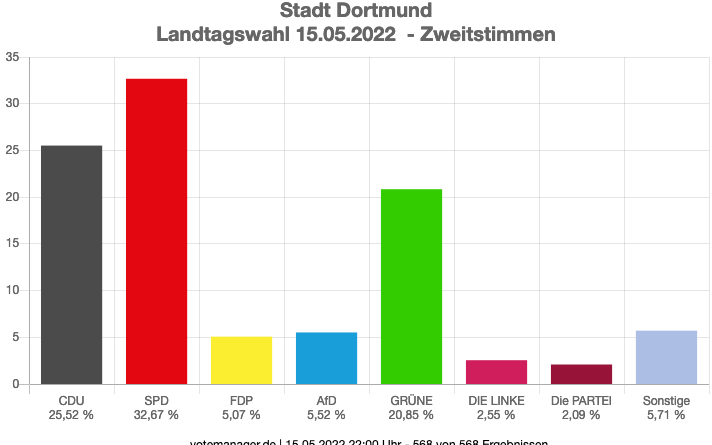 Die Einzelergebnisse aus den jeweiligen Stadtbezirken - und sogar je nach Wahlraum findet ihr hier: Landtagswahl 2022 - Stadt Dortmund