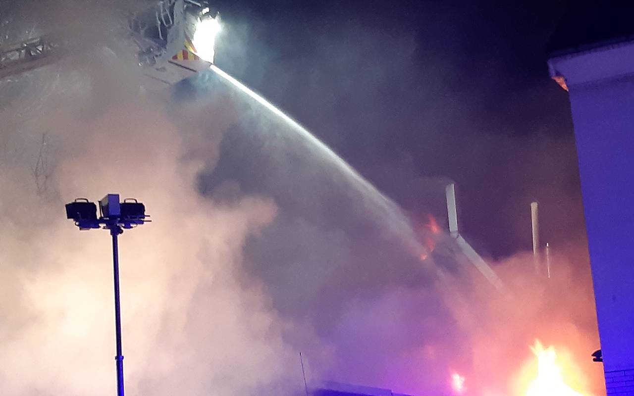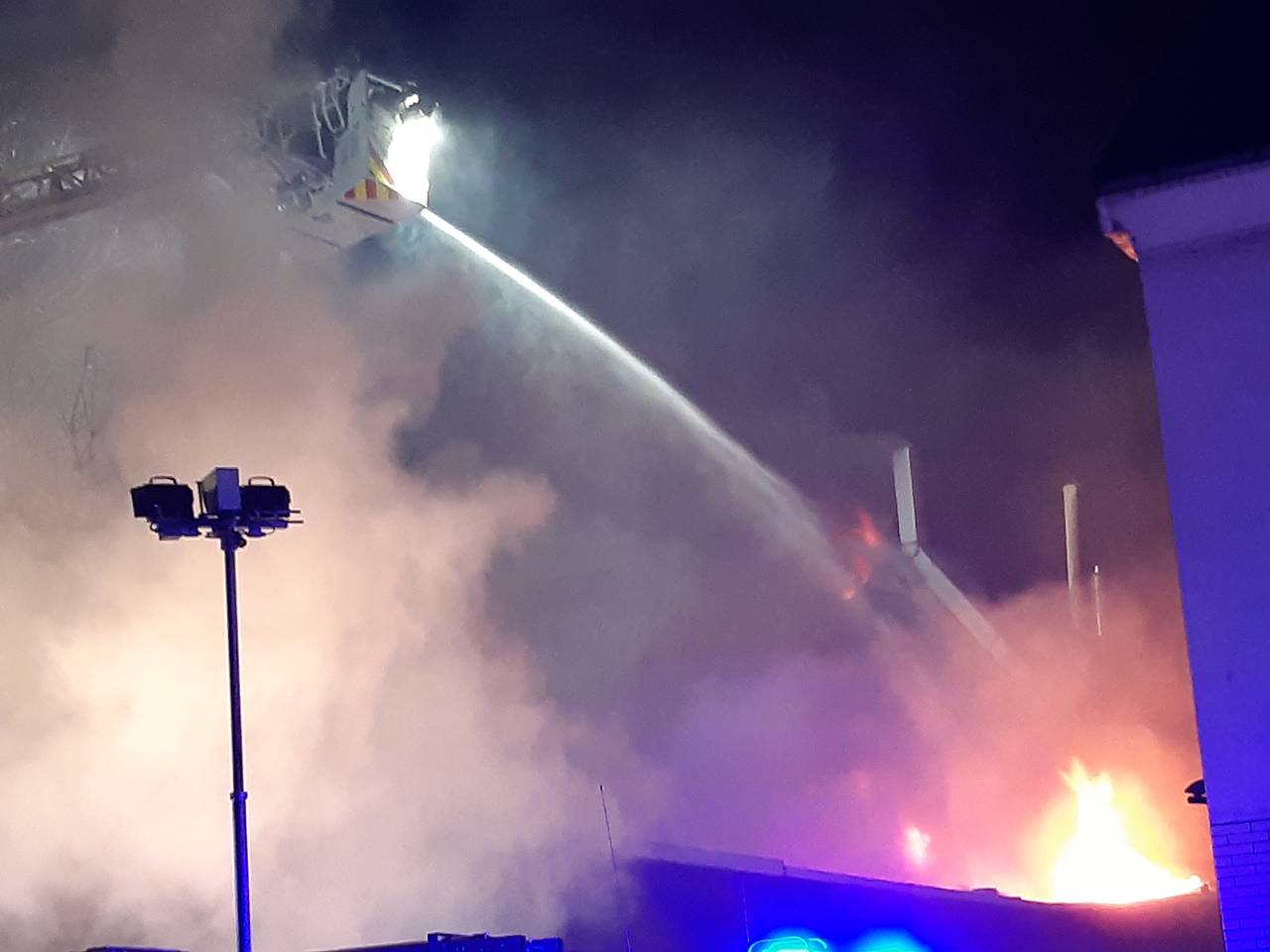 Erst wurde nur mit Wasser gelöscht. Dann konnte aber mithilfe des Technischen Hilfswerks das Dach aufgemacht werden, um das Feuer auch mit mehreren Schaumrohren zu bekämpfen. Ein Übergreifen auf Nachbargebäude konnte die Feuerwehr verhindern. Das THW rückte am Morgen mit einem Bagger an und verschaffte so den Feuerwehrleuten Zugang zu Brandnestern.