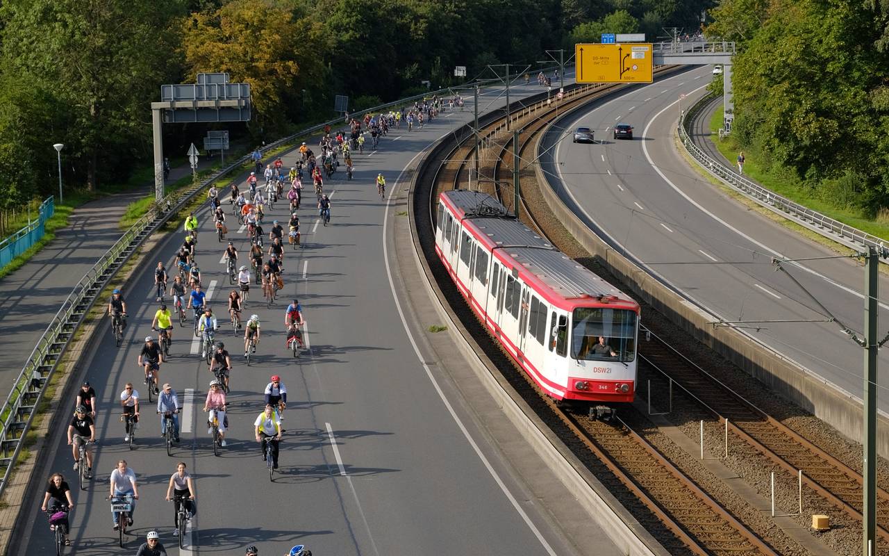 Am Sonntag haben nach Angaben der Polizei 900 Menschen an einer großen Fahrrad-Demo durch Dortmund teilgenommen, um sich für bessere Radwege in Dortmund einzusetzen. Die Demo wurde von der Initiative "Aufbruch Fahrrad Dortmund" organisiert. Auf der 28 Kilometer langen Demo-Strecke wurden wichtige Straßen blockiert. Vom Hansaplatz ging es auf die B54, wo sonst Tempo 100 ist. Dann über Aplerbeck und Hörde und die B1. Mit Klingeln und lauter Musik fuhren die Räder durch den Wambeler Tunnel auf der B236. Nach einer Ehrenrunde um den Borsigplatz ging es zurück zum Startpunkt, dem Hansaplatz.