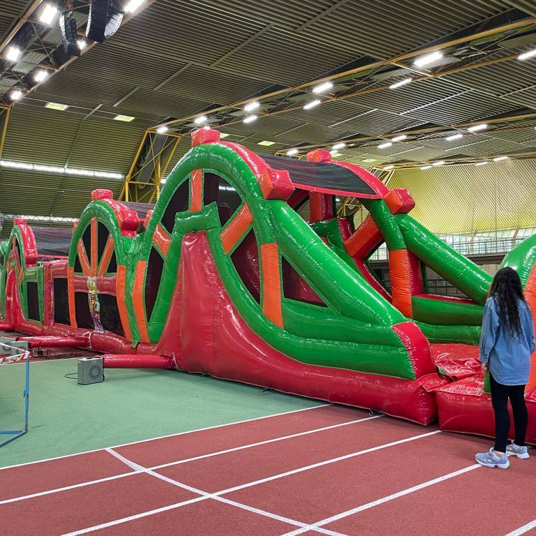 Ferienspaß für rund 400 Kinder gibt es in der Helmut-Körnig-Halle. Ein Highlight ist der Hindernis-Parkour: Eine riesige und mehrerer Tonnen schwere Luftkissen-Installation steht einmal quer in der Halle. Radio 91.2-Praktikant Simon Kaufmann hat zusammen mit dem 12-jährigen Finn den Test gemacht.