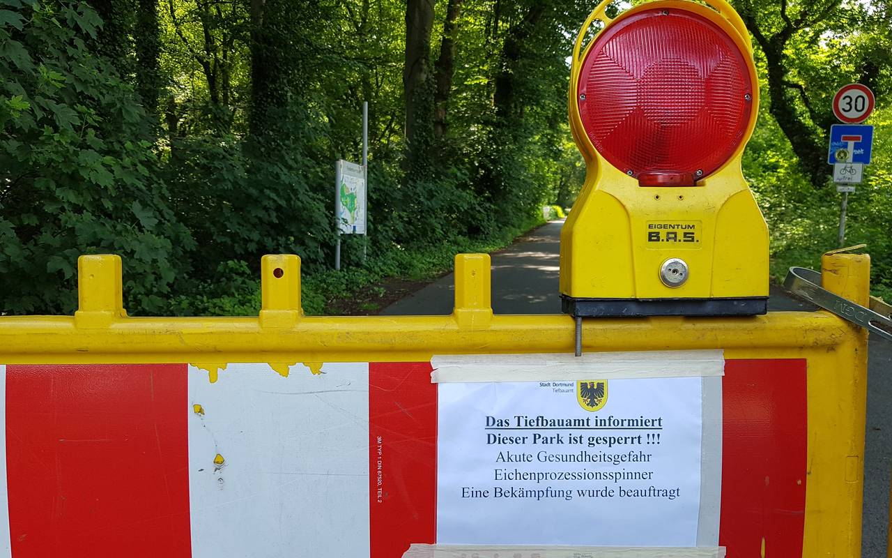 Der Fredenbaumpark muss wegen des Eichenprozessionsspinner-Befalls weiter gesperrt bleiben. Inzwischen haben die Gutachter mehr als 400 befallene Bäume festgestellt. Der Rombergpark ist dagegen frei von dem Schädling. Im Westfalenpark gibt es lediglich an sechs Bäumen einen kleineren Befall.