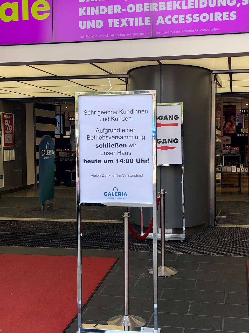 Insbesondere die Karstadt-Mitarbeiter verstehen die Welt nicht mehr. Denn der Konzern hatte erst vor Kurzem das Kaufhaus saniert und rund acht Millionen Euro investiert. Jetzt soll die Filiale dicht gemacht werden. Viele Beschäftigten seien mit Tränen in den Augen nach Hause gegangen. Karstadt und Kaufhof bleiben heute geschlossen.