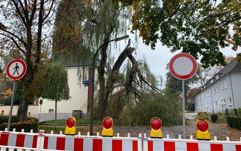 Die alte Weide steht auf dem Grundstück der Wohnungsgesellschaft LEG, die muss jetzt die kleineren und größeren Äste der Weide entsorgen und den Baum kontrollieren. Erst dann könne die Straße wieder freigegeben werden. Der Schaden am Kleintransporter wird noch ermittelt