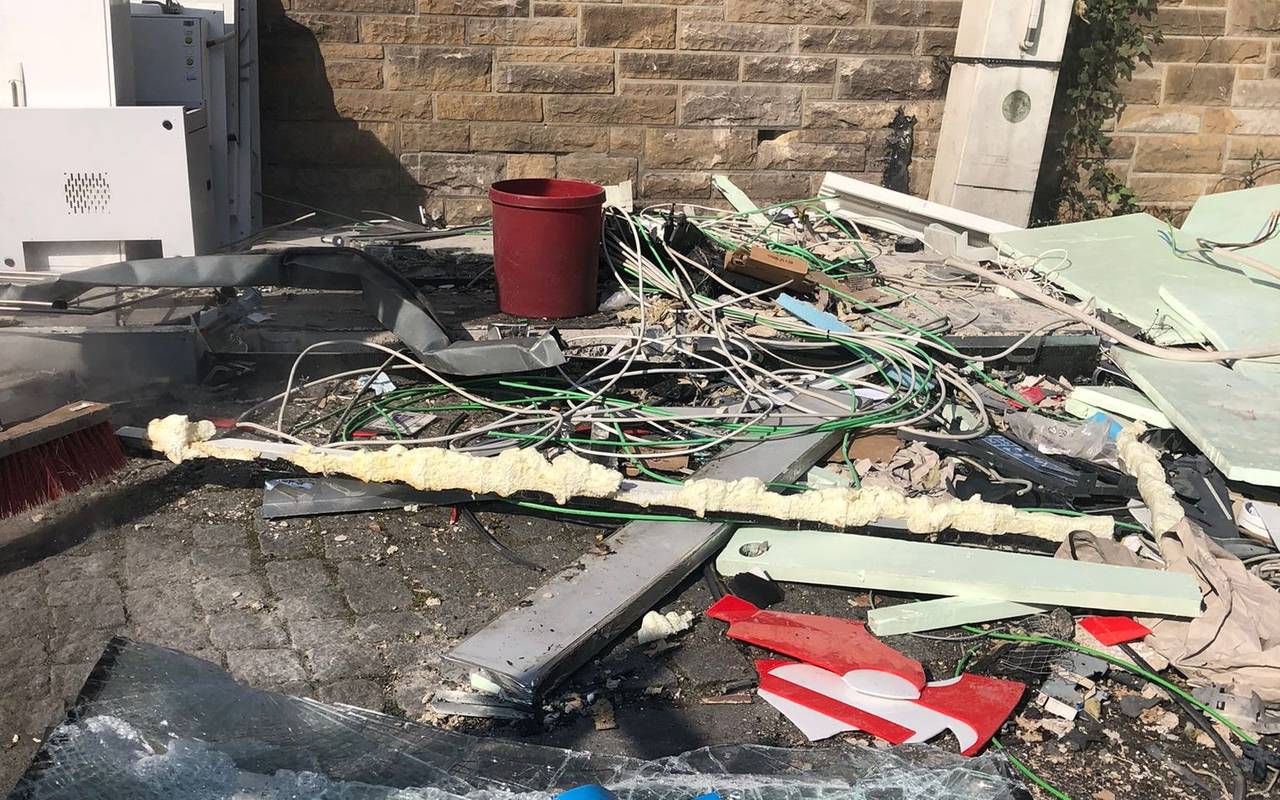 Ein Selbstbedienungs-Container der Sparkasse ist bei der Sprengung komplett zerstört worden. Laut Anwohnern hat es zwei Mal laut geknallt. Die Deinighauser Straße war teilweise gesperrt. Da liefen letzte Spurensicherungsmaßnahmen. Auch die Entsorgung Dortmund war vor Ort. Wieviel Geld erbeutet wurde, ist bisher unklar.