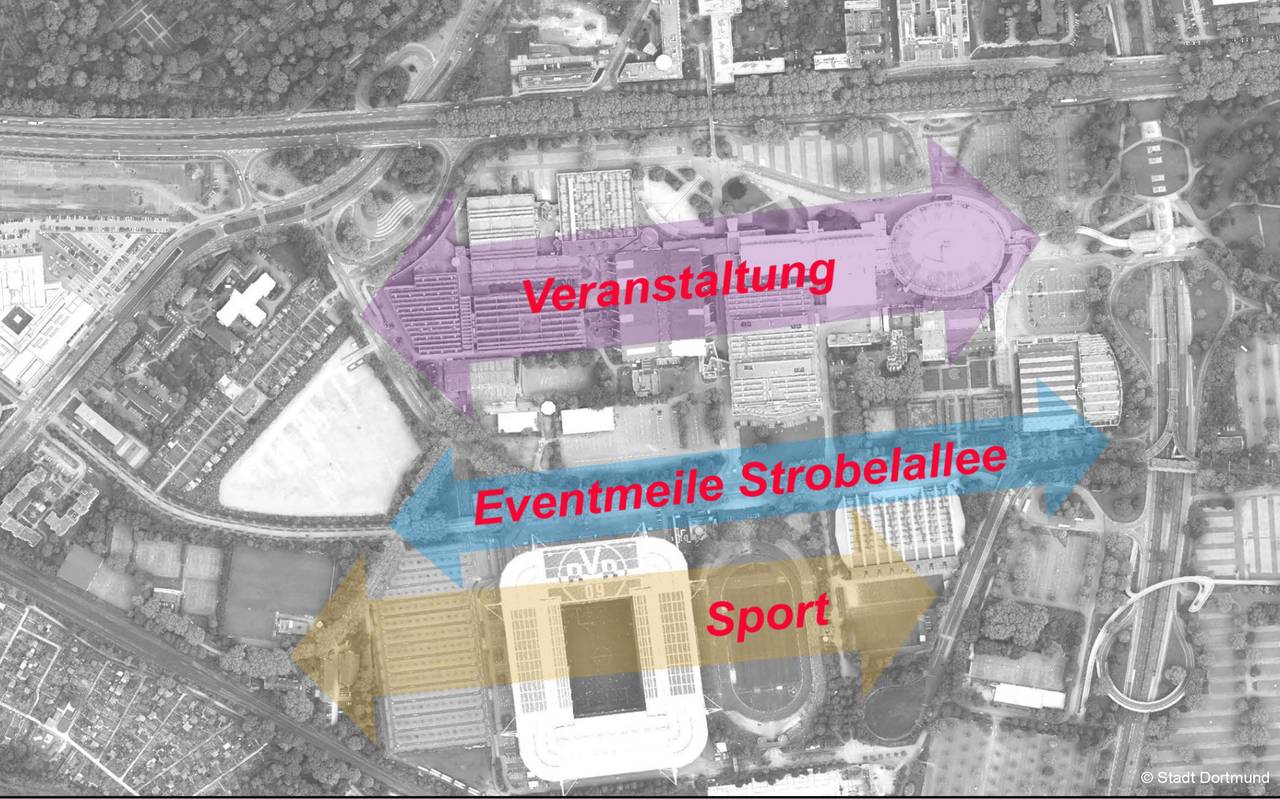 Rund um die Westfalenhallen und das Stadion soll es nach Plänen der Stadt in den nächsten Jahren zu großen Veränderungen kommen. So sollen nach und nach die alten Messehallen abgerissen und neu gebaut werden.
