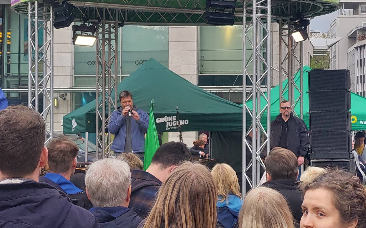 Neben Habeck standen auch die Spitzenkandidatin der Grünen in NRW, Mona Neubaur, und die vier Dortmunder Direktkandidaten auf der Bühne. Sie haben Fragen aus dem Publikum zu Themen wie Bildungs-, Klima- und Lokalpolitik beantwortet. Dabei wurden sie durch Trillerpfeiffen und Protestrufe gestört. Die Polizei spricht insgesamt von einem ruhigen Einsatz. Es laufen drei Anzeigen wegen Körperverletzung und Beleidigung.