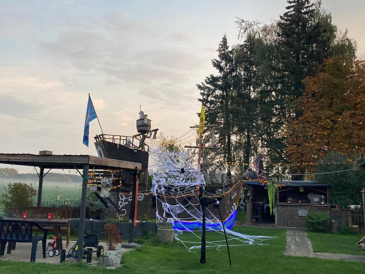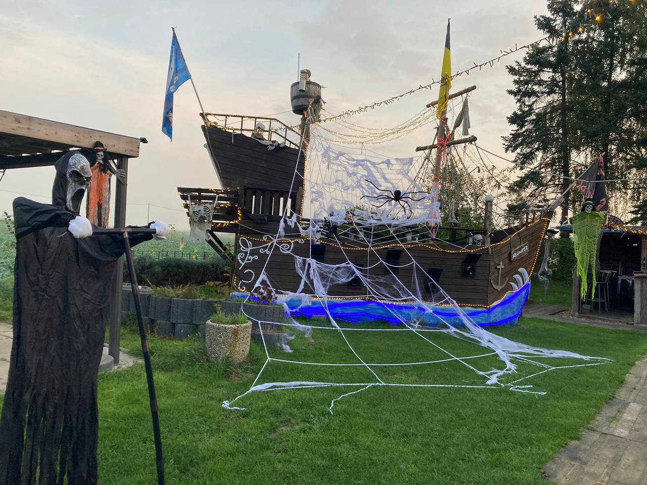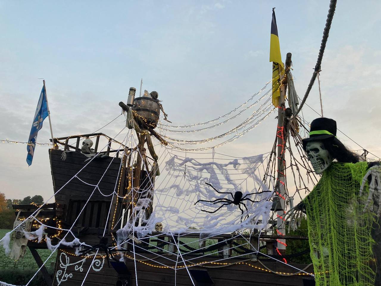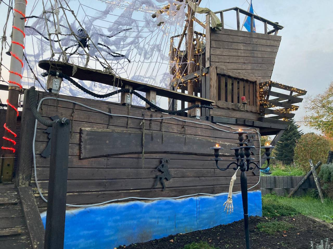 Seit drei Jahren hat Hans Kett aus Dortmund-Lanstrop ein riesiges Piratenschiff im Garten. Dieses Jahr hat er es zum ersten Mal in ein Grusel-Schiff verwandelt. Mit Spinnenweben, Totenköpfen und flackernden Kerzen. Heute Abend gibt es bei ihm eine Halloween-Party. Wer da Stress macht, wird auf dem Friedhof hinter dem Piraten-Grusel-Schiff verbuddelt, sagt Hans.