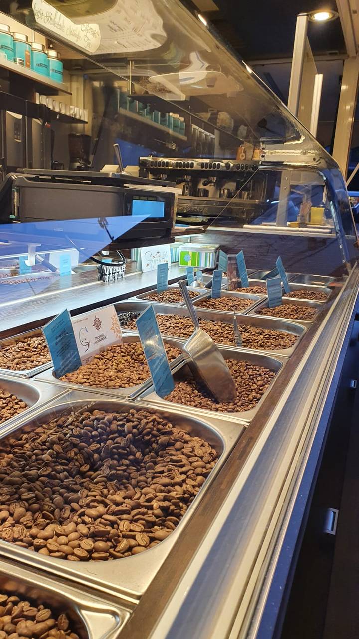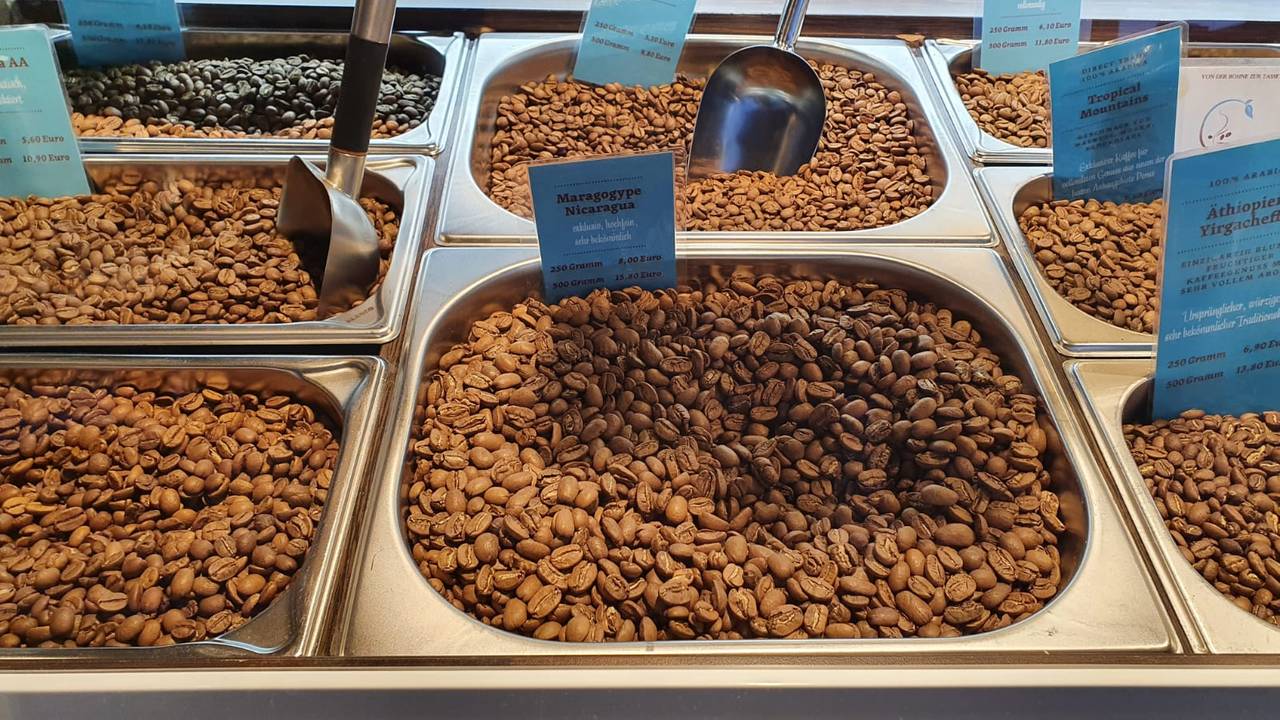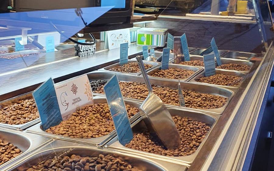 So langsam füllt sich der Wochenmarkt mit Kunden. Michael kommt zweimal in der Woche zum Markt und trinkt einen Kaffee bei Derks Kaffeerösterei.