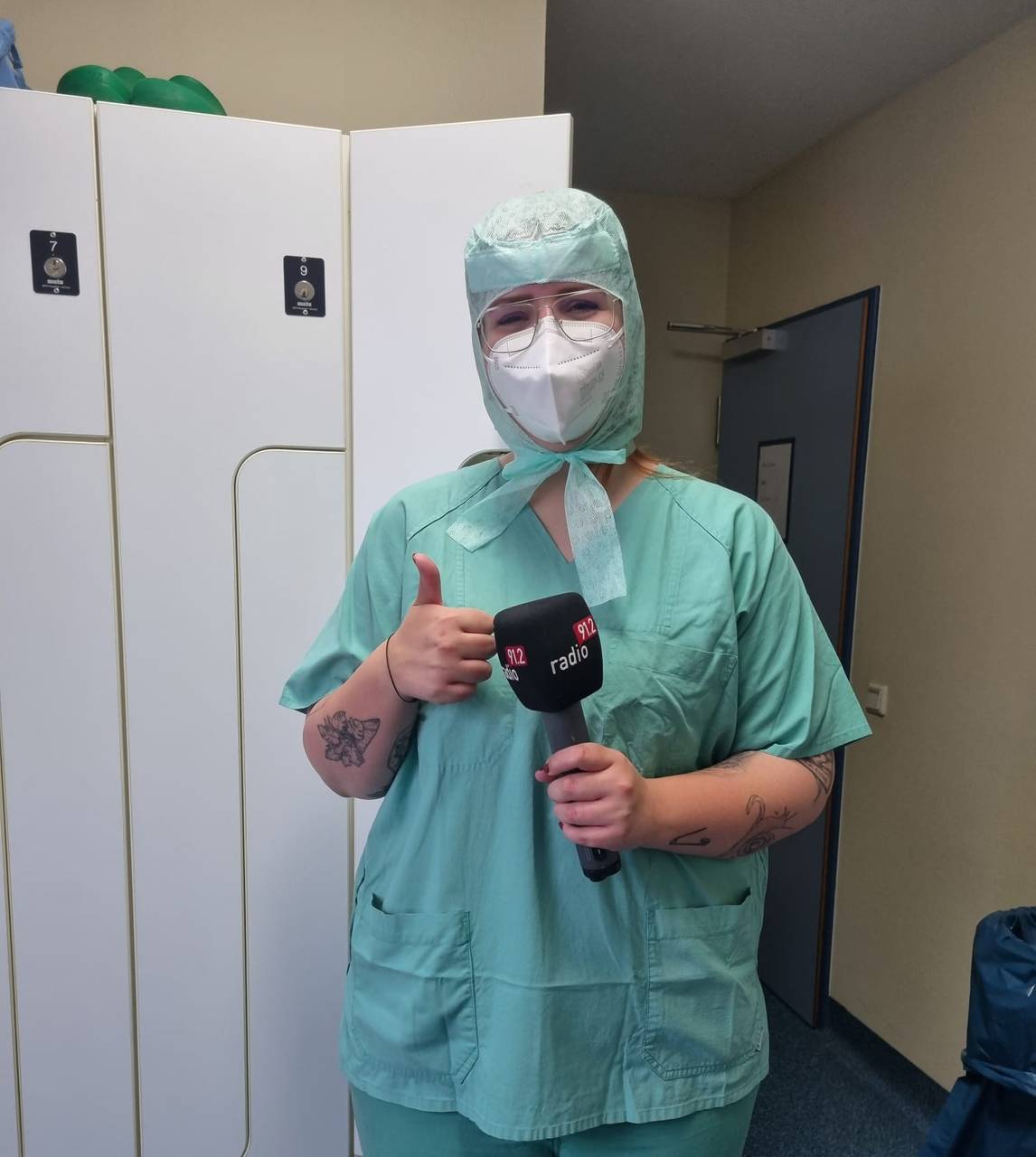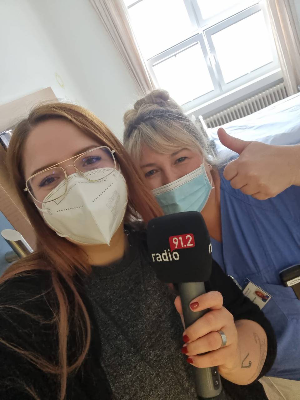 Jetzt begleitet Radio 91.2-Reporterin Natalie Sager als nächstes Hebamme Nicole auf die Wochenstation, wo die Babys und Eltern nach der Geburt betreut werden.