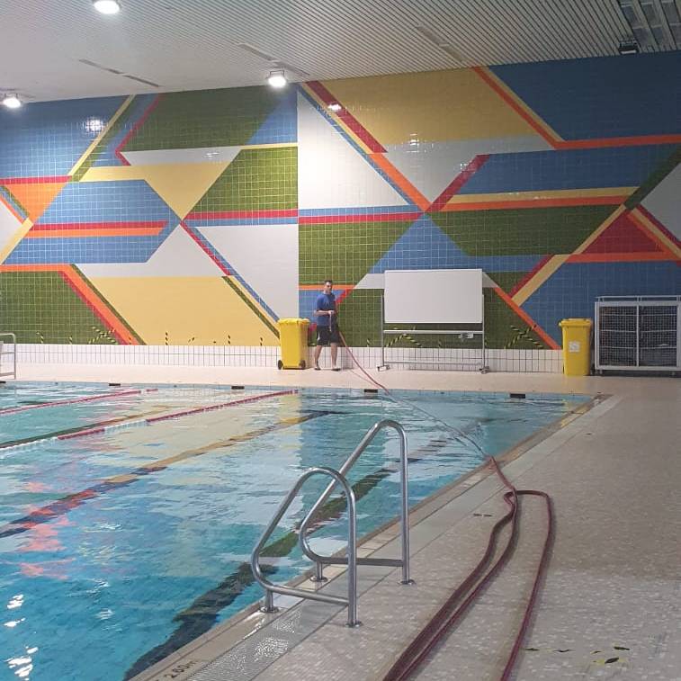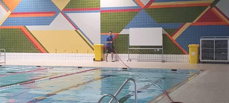Radio 91.2-Reporterin Selina Stolze bekommt einen exklusiven Blick hinter die Kulissen und unter das Schwimmerbecken.