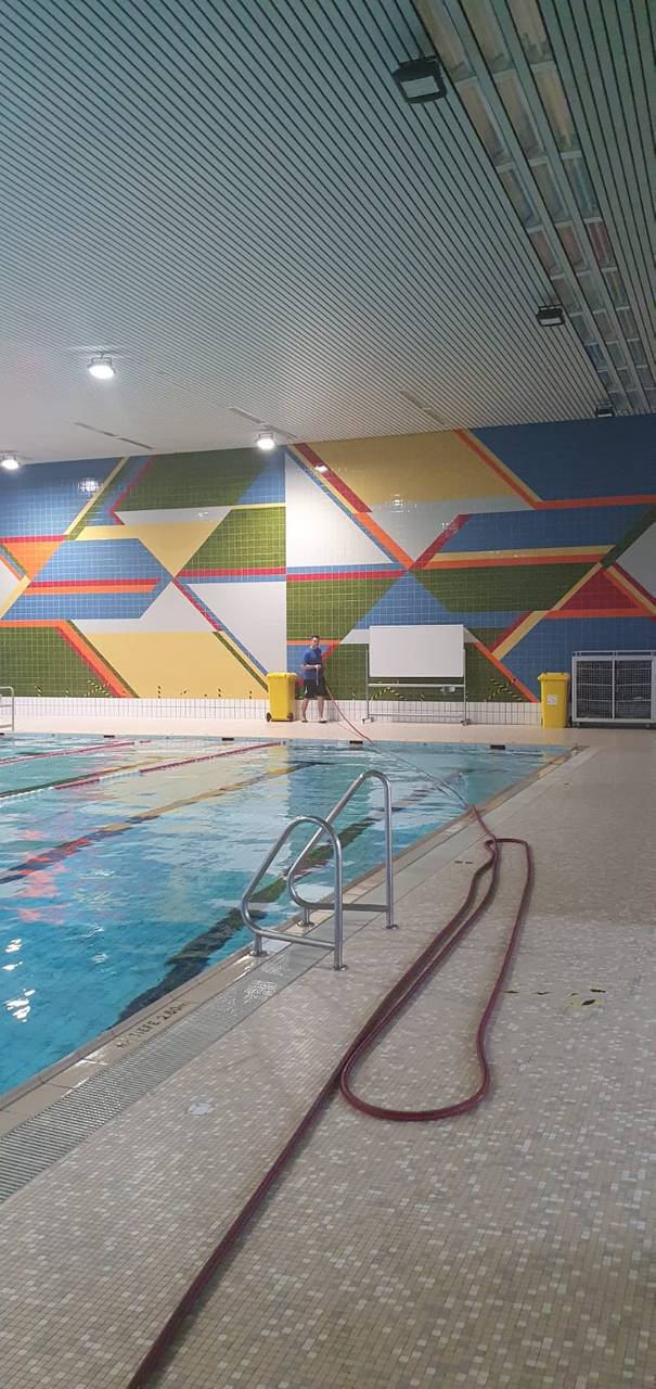 Radio 91.2-Reporterin Selina Stolze bekommt einen exklusiven Blick hinter die Kulissen und unter das Schwimmerbecken.