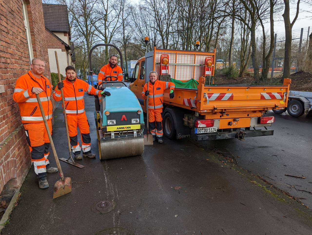 Radio 91.2-Reporter Julian Schildheue war in Dortmund-Mengede unterwegs. Dort traf er die Helden der Frühschicht vom Dortmunder Tiefbauamt. Sie asphaltierten dort einen Bürgersteig.