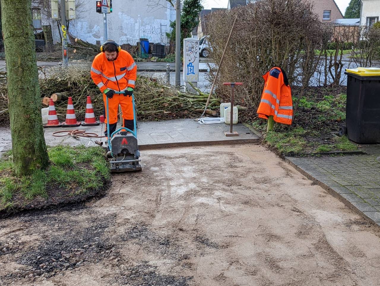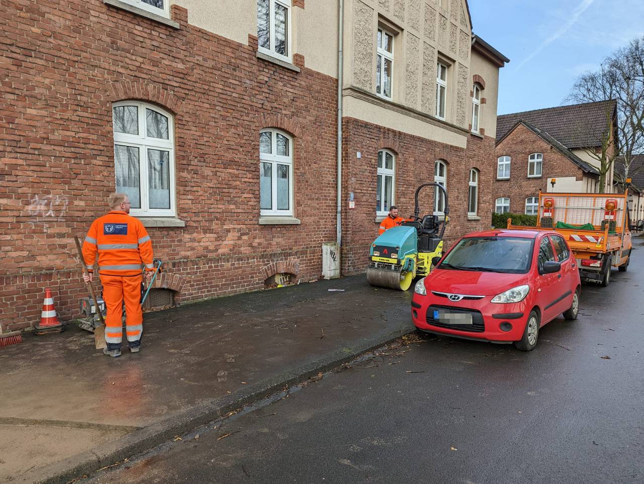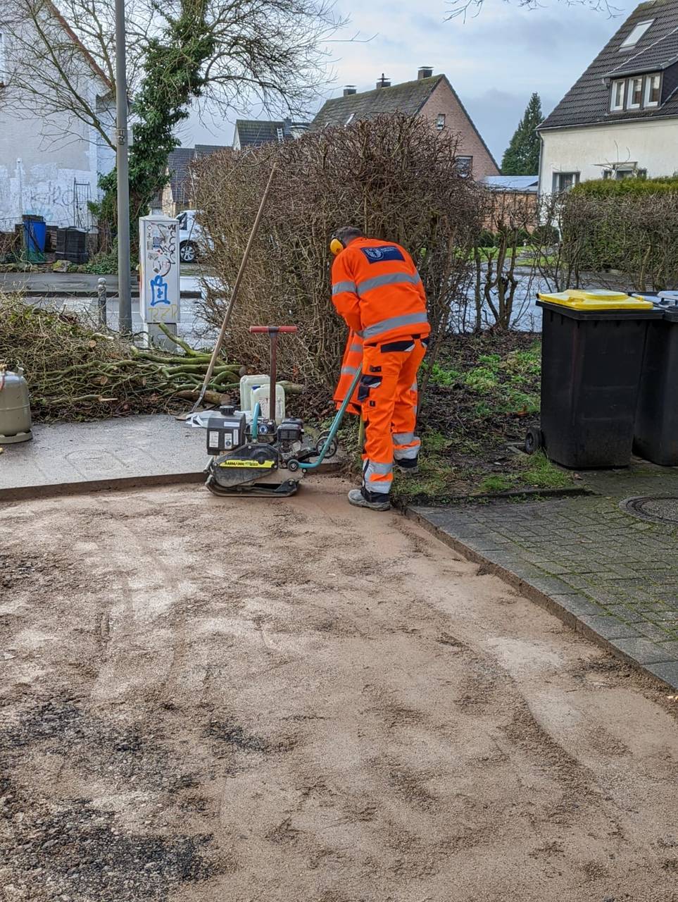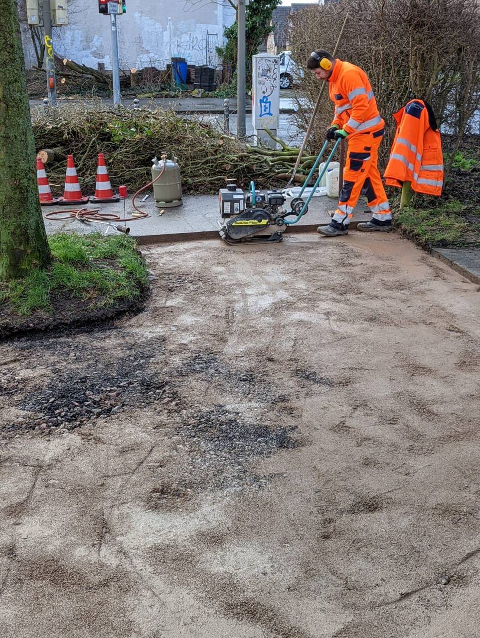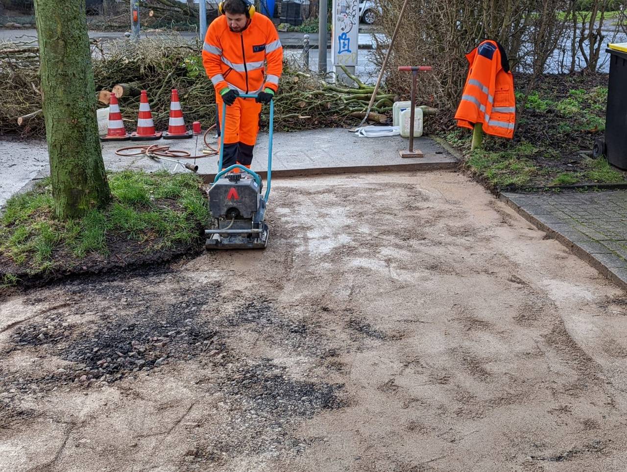 Radio 91.2-Reporter Julian Schildheuer ist mit dem Tiefbauamt in Mengede unterwegs. Dort wird ein Bürgersteig neu asphaltiert.
