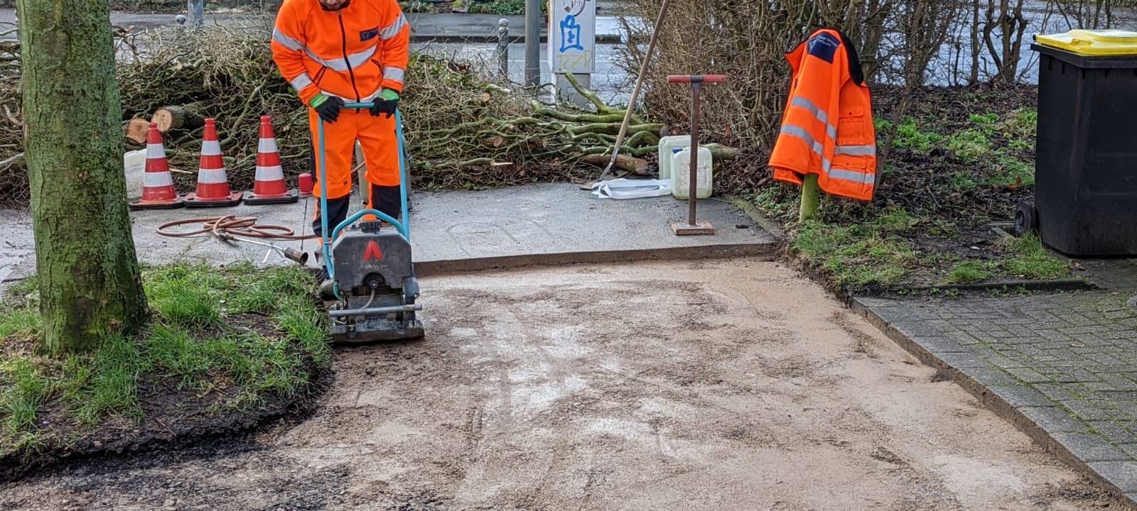 Bürgersteig wird asphaltiert vom Tiefbauamt Dortmund.