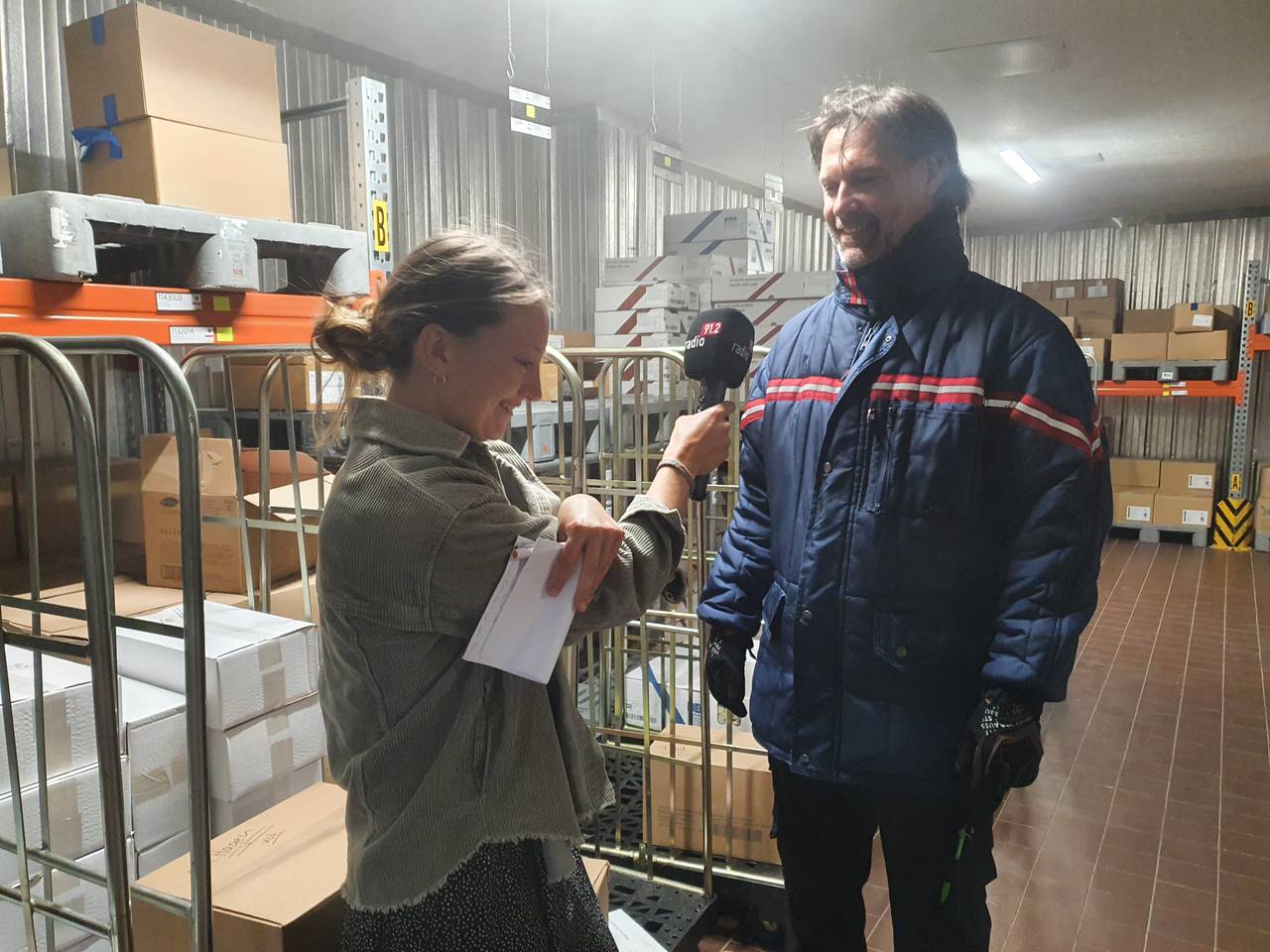Radio 91.2 Reporterin Alicia Theisen ist im Zentrallager und packt da zusammen mit Dirk Huperz-Reuber die Lastwagen voll.