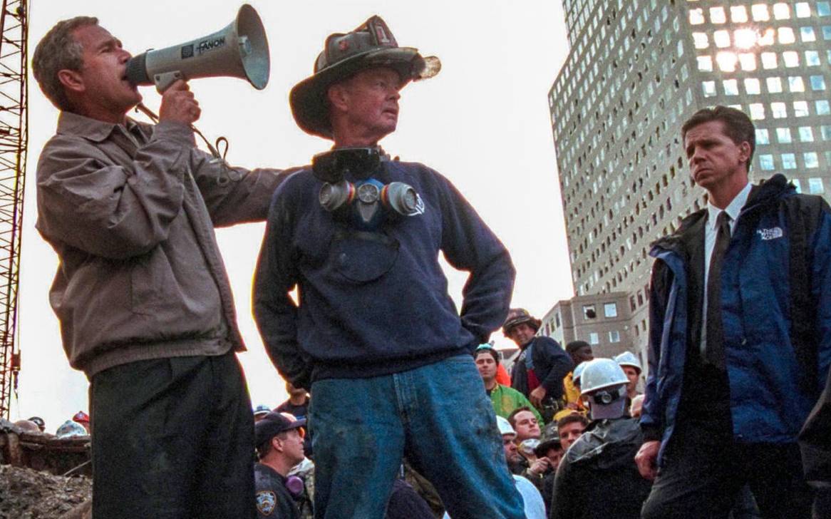 «Wir hatten keine Ahnung, dass der Präsident kommt. Und falls wir es wussten, hatten wir es vergessen», erzählt Beckwith, der tagelang unermüdlich nach dem vermissten Sohn eines Freundes suchte. Er stand gerade auf einem zerstörten Feuerwehrwagen, als Bush auftauchte. «Und er kommt geradewegs auf mich zu, und er streckt den Arm aus, und ich ziehe ihn hoch». Die Bilder die folgen – Bush mit Megafon und dem Arm um Beckwith – gehen als Symbol amerikanischen Durchhaltewillens um die Welt. 20 Jahre später ist der Feuerwehrmann noch immer eines der Gesichter der Anschläge des 11. September, Held und Opfer zugleich.