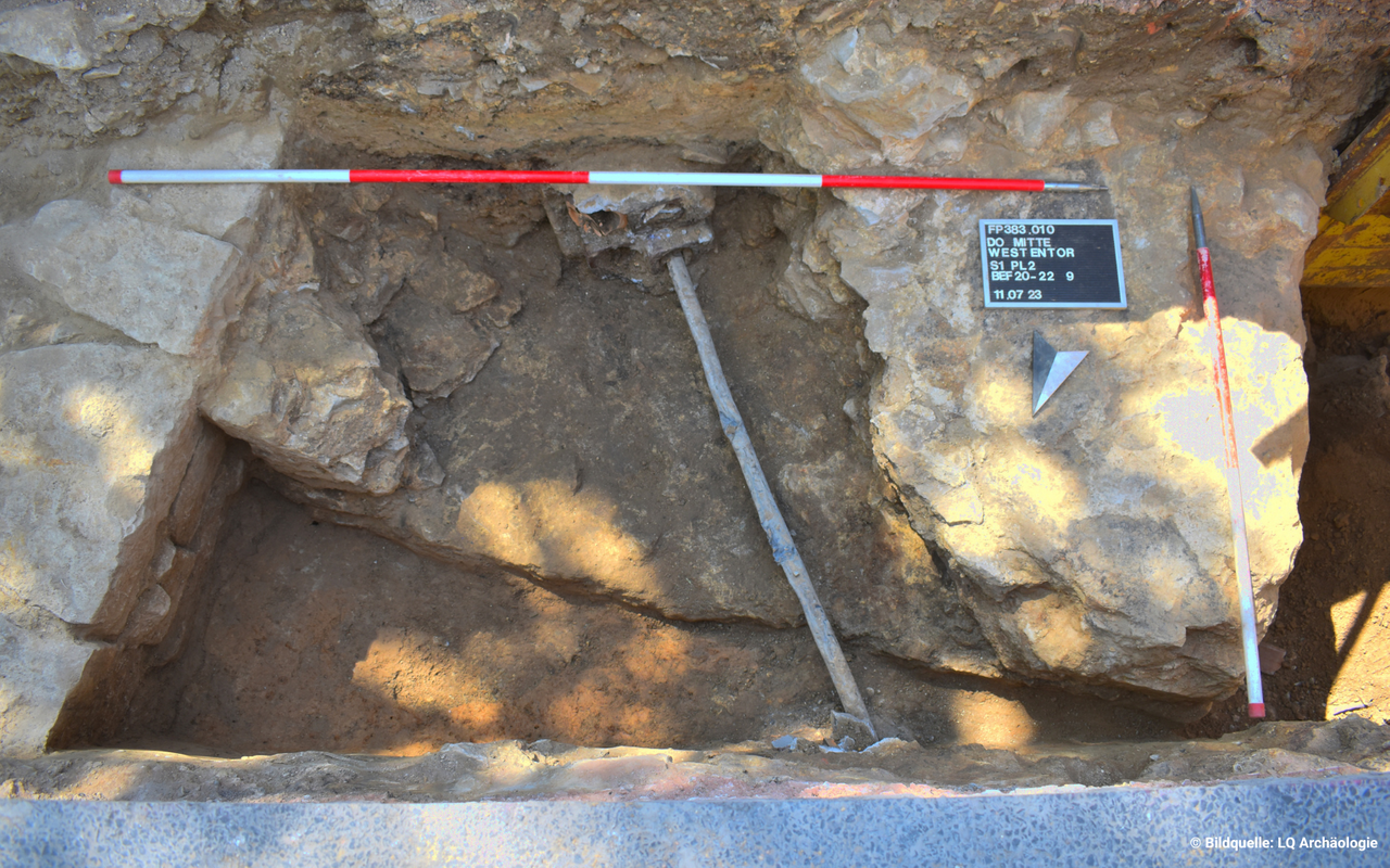 Die Archäologen sind sich ziemlich sicher, dass es sich dabei um ein weiteres Teil des Westenrondells handelt. Das Westenrondell war eine halbrunde Kanonenplattform, die vermutlich im späten 16. Jahrhundert nachträglich an die Hauptmauer angebaut worden war. Das gefundene Stück davon hat einen rechteckigem Grundriss. Es sind vermutlich die Überreste eines Strebpfeilers, der hoch aufragende Teile des Mauerwerks stabilisiertet hat. Schon 2019 wurde nur wenige Meter entfernt eine ähnliche Konstruktion dokumentiert.