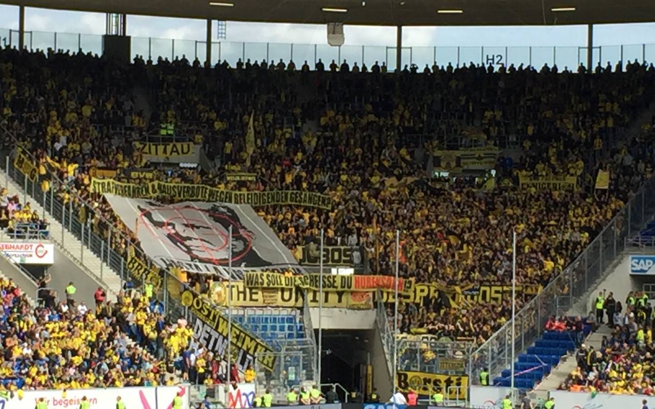 Es droht eine dreijährige Sperre für den Gästeblock nachdem BVB-Anhänger nach der Halbzeitpause erneut Hoffenheims Mäzen Dietmar Hopp mit Schmähgesängen und Spruchbannern beleidigt haben. Die Anhänger des BVB standen bereits nach Anzeigen von Hopp unter Beobachtung und waren auf Bewährung. Das DFB-Sportgericht muss jetzt ein Urteil fällen.