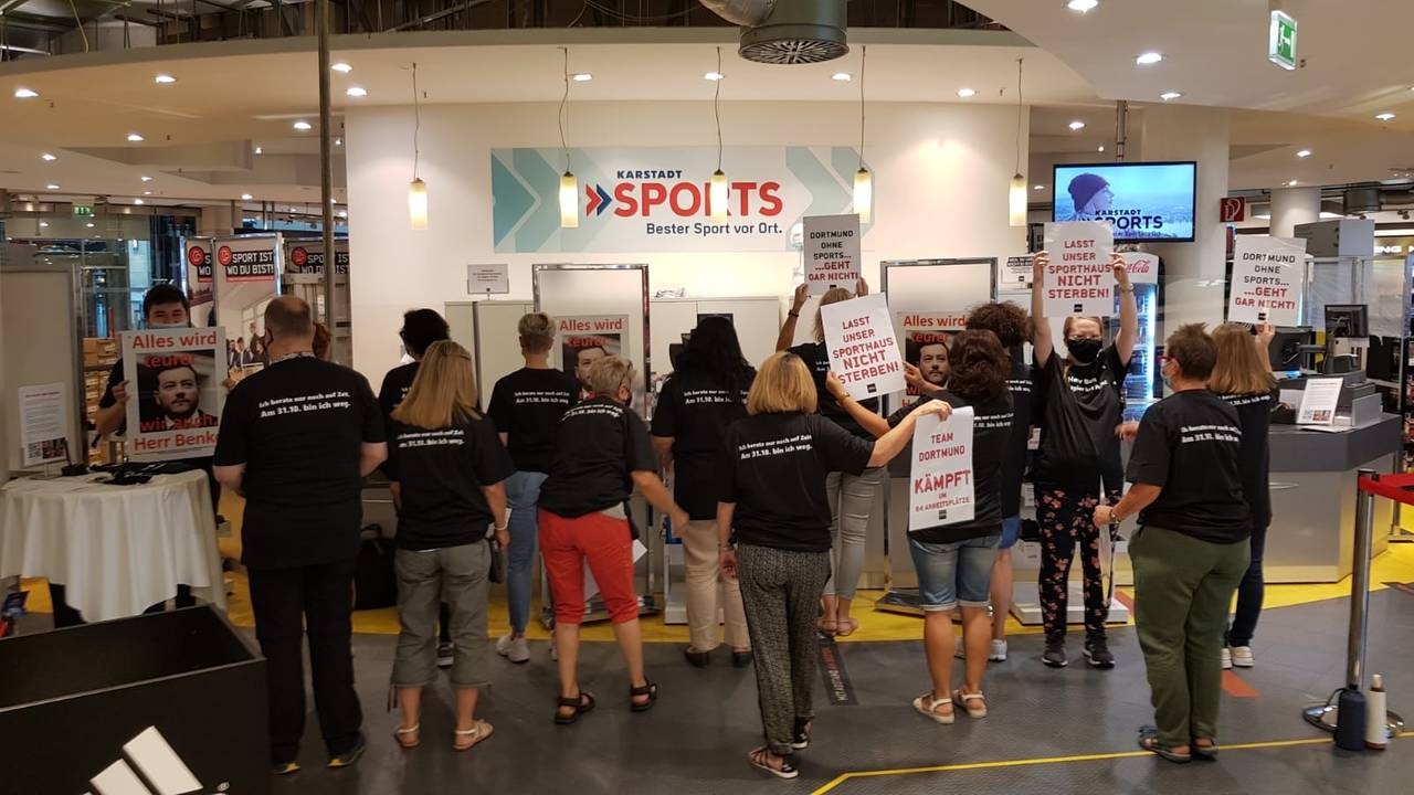 Karstadt Sports Dortmund: Mitarbeiter machen mit Aktion auf ihre Situation aufmerksam