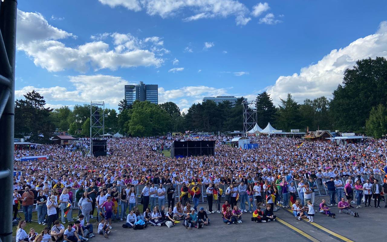 Jetzt haben wir die ersten Tage erlebt, wenn nicht in Dortmund gespielt wird und nicht die deutsche Mannschaft spielt und können mit Sicherheit sagen, der Friedensplatz ist komplett ausreichend, um diese Tage abzudecken. Da funktioniert er auch sehr gut. Und um das Personal zu entlasten und nicht unnötig Budget rauszuwerfen, haben wir gesagt, wir können am Freitag auf das Public Viewing im Westfalenpark verzichten.