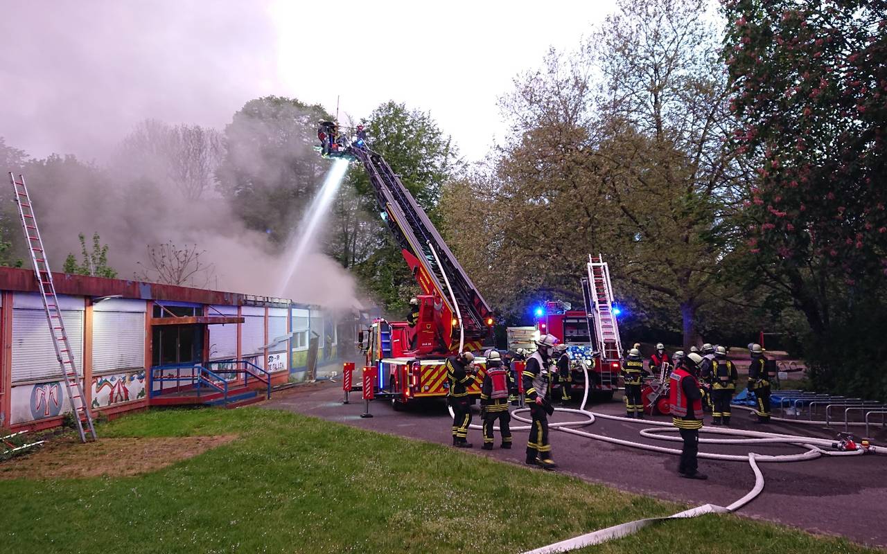 Weil die Umgebung stark verraucht wurde und einige Bürger besorgt nachfragten, gab es eine Warnung über die App Nina, Fenster und Türen geschlossen zu halten. Das ausgebrannte Objekt ist eigentlich ein Wohncontainer, der als Jugendtreff und zur Kinderbetreuung genutzt wurde. Mit einer speziellen Säge wurde die Dachkonstruktion von außen über eine Drehleiter aufgeschnitten, um das Feuer im Dach löschen zu können. Gegen 0 Uhr war das Feuer gelöscht, gegen ca 1.30 Uhr konnte die Feuerwehr den Einsatz beenden. Verletzt wurde niemand. Zur Brandursache und zur Schadenhöhe konnte die Polizei noch keine Angaben machen.