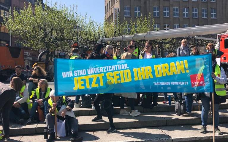 Zwei Demozüge von den Westfalenhallen und vom Dortmunder U zogen zum Hansaplatz. Dadurch kam es auf der Strecke zu Verkehrsstörungen. Hintergrund für den Warnstreik sind die Tarifverhandlungen für deutschlandweit mehr als 300.000 Beschäftigte. Bisher hätten die kommunalen Arbeitgeber kein annehmbares Angebot vorgelegt, sagt Verdi-Gewerkschaftssekretärin Nicole Kürpick. Sie habe zwar Verständnis für den Unmut der Eltern wegen geschlossener Kitas.