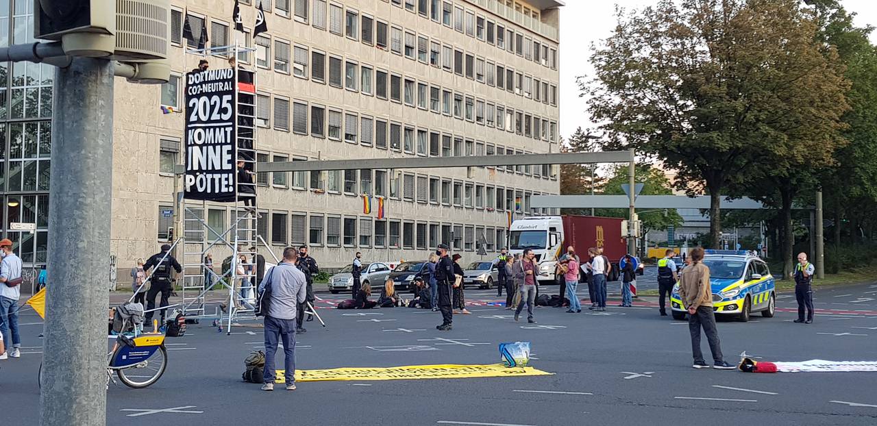 Klimaaktivisten blockieren Kreuzung Südwall/Ruhrallee in Dortmund
