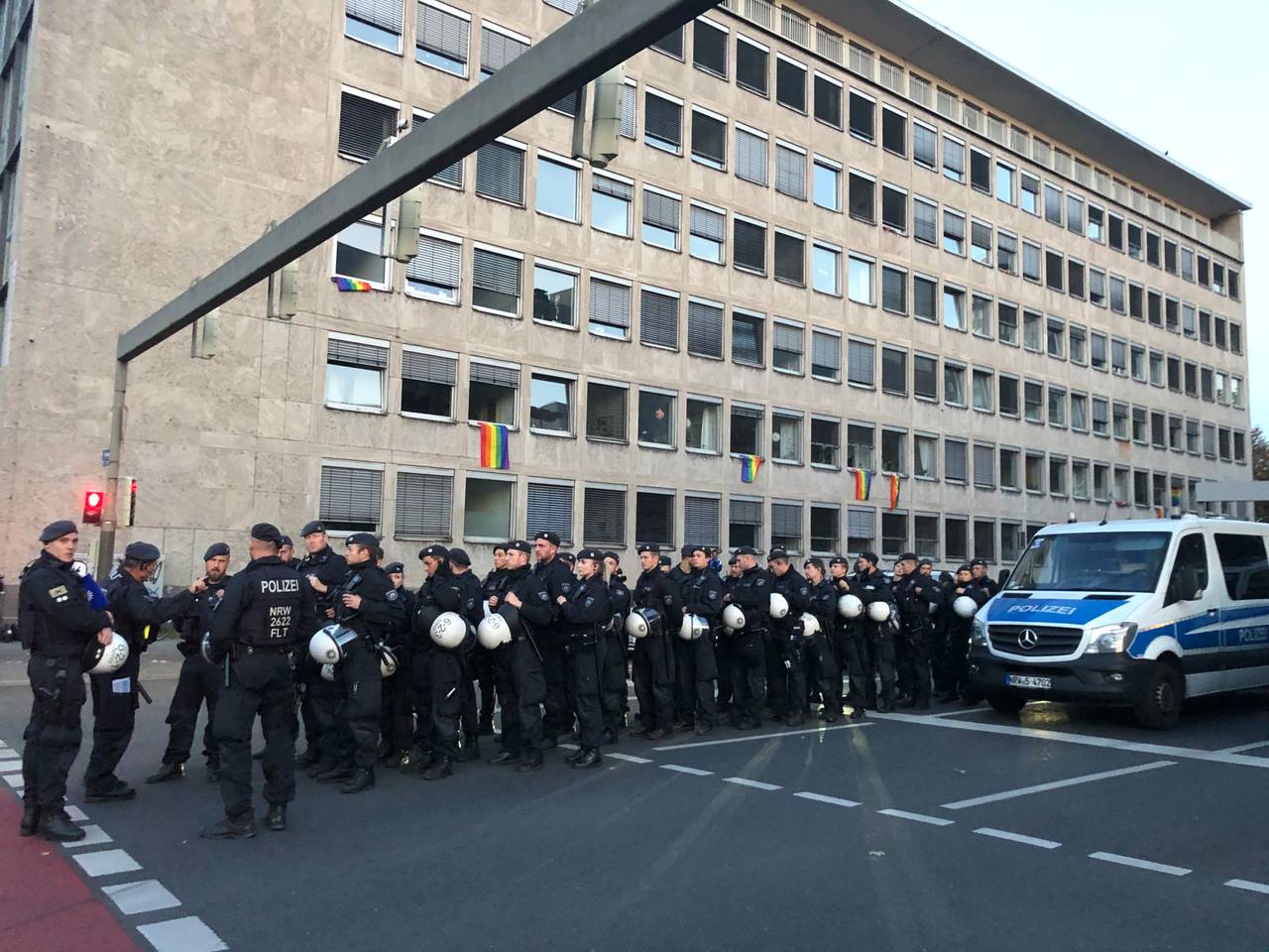 Gegen 16.45 Uhr versuchte die Polizei Dortmund eine erste Kontaktaufnahme. Allerdings ohne Erfolg. Die Beamten griffen dennoch nicht ein, sondern leiteten den Verkehr an der nicht angemeldeten Demo vorbei.