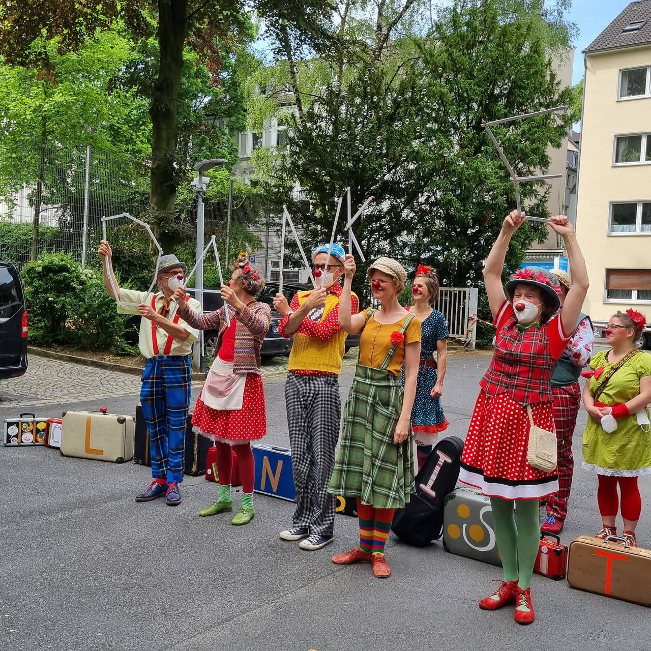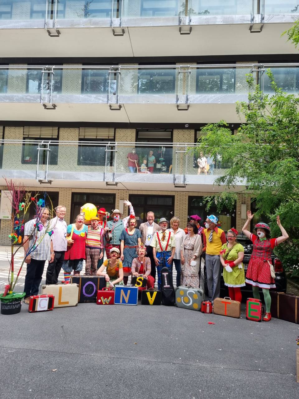 Kinder im Krankenhaus leiden sehr oft unter ihrem, teilweise langem, Krankenhausaufenthalt. Die Klinikclowns wollen die Kids ein bisschen ablenken und versuchen, die Stimmung zu lockern. Jetzt feiert die Clownsvisite ihr 20-jähriges Jubiläum. Und da haben sie draußen vor den Zimmern der Kinder eine kleine Show zu ihrem 20. Jubiläum gemacht. Erstmal gab's ein Ständchen...
