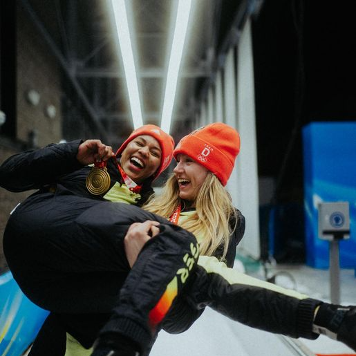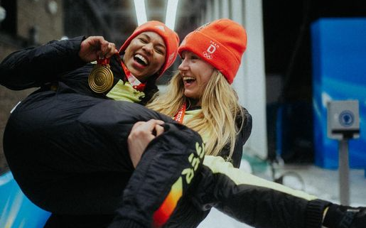 Die Dortmunder Bob-Pilotin Laura Nolte (re.) hat bei Olympia gemeinsam mit Anschieberin Deborah Levi (li.) Gold geholt. Jetzt ist sie zurück und berichtet über den Sieg.