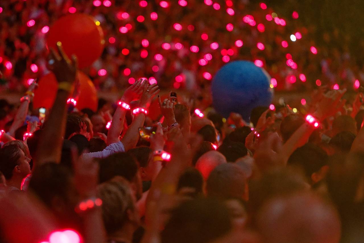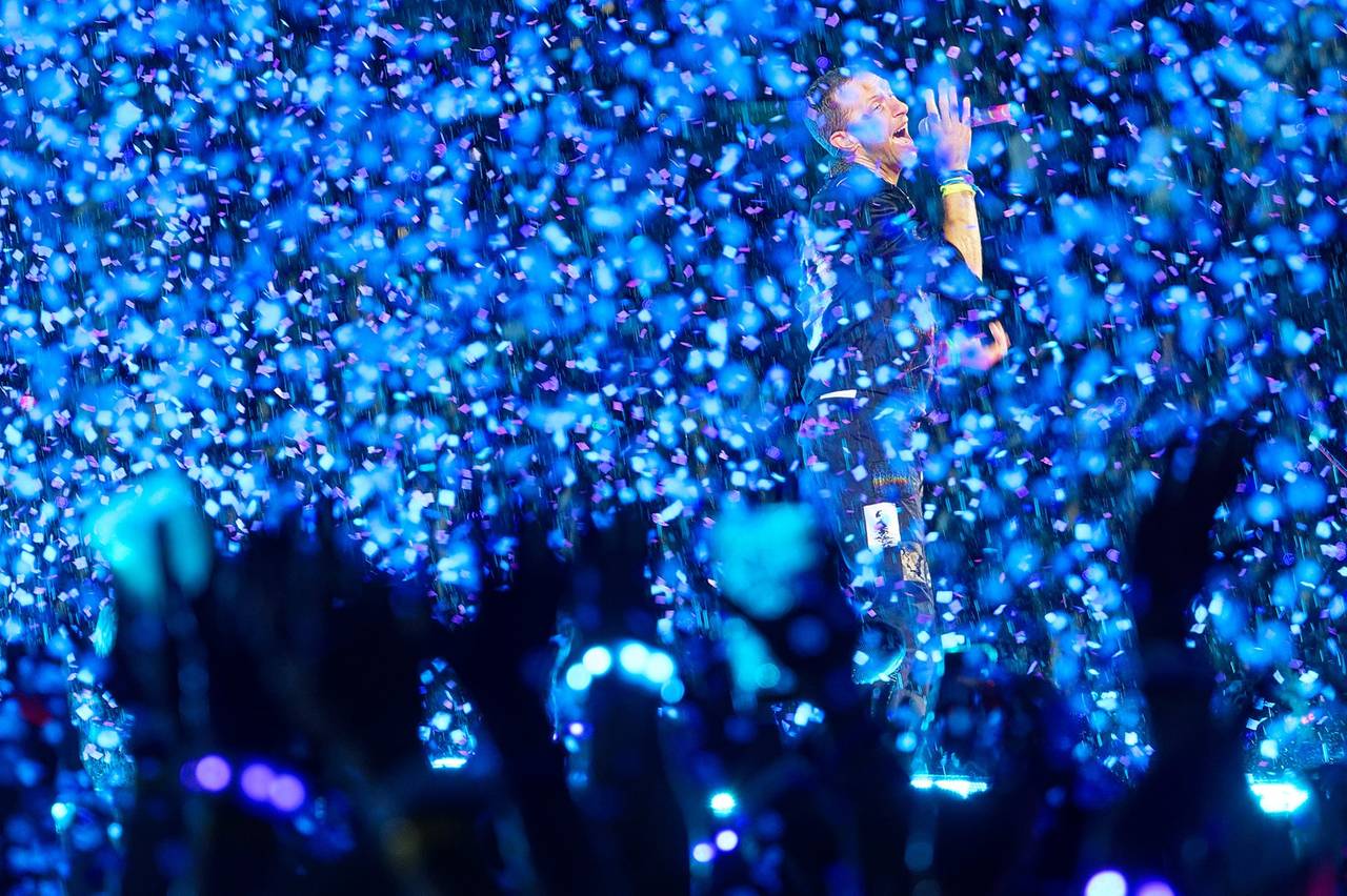 Die an den Eingängen verteilten LED-Armbänder aus recyceltem Plastik, mit denen jeder Besucher bei Coldplay schon seit Jahren Teil der farbenfrohen Lichtshow wird, tauchten die ausverkaufte Arena in kunterbuntes Licht. Auch an Konfetti und Feuerwerkeffekten mangelte es nicht.