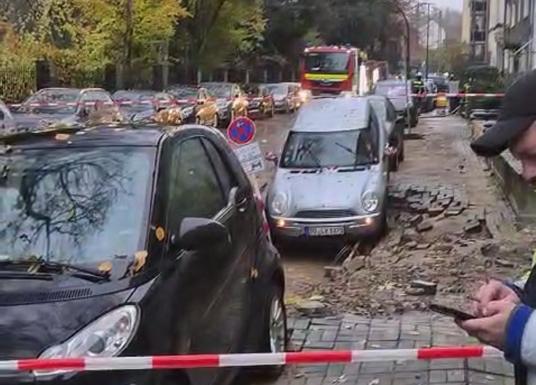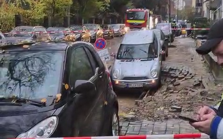 Update 08.55 Uhr: Unsere Reporterin Jackie Schlüsener ist mittlerweile im gesperrten Bereich und sieht die Ausmaße des Rohrbruchs. Ein Auto liegt auf dem Kopf, Mülltonnen sind umgefallen, Straßenschilder aus dem Boden gerissen. Anwohner sind heute Morgen von den Wassermassen überrascht worden. Gemeinsam mit der Feuerwehr versuchen sie jetzt, ihre Keller wieder leer zu pumpen. Immer mehr Anwohner stellen fest, dass auch ihre Keller vollgelaufen sind.