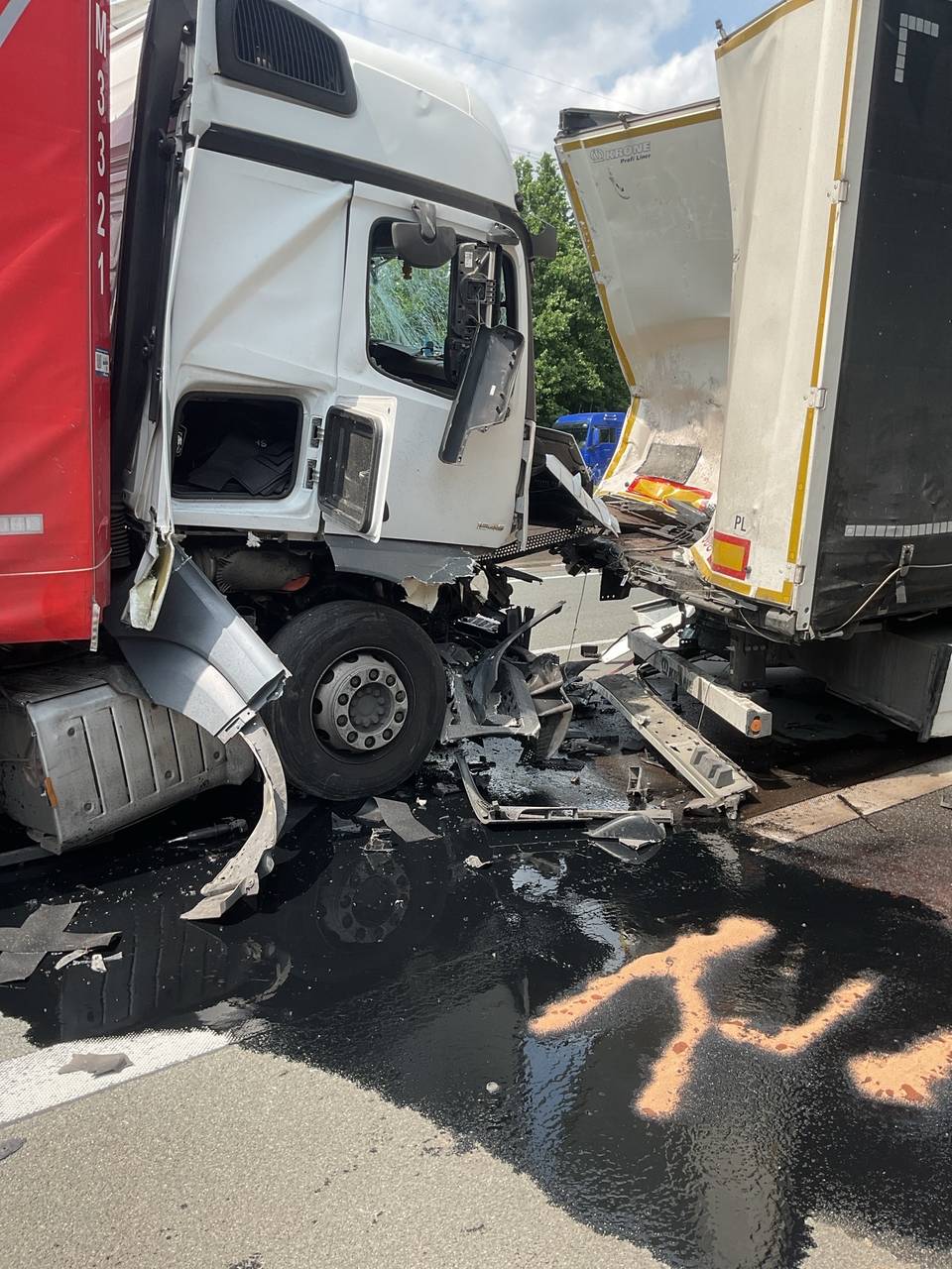 Drei LKW auf A45 Richtung Dortmund ineinander gekracht