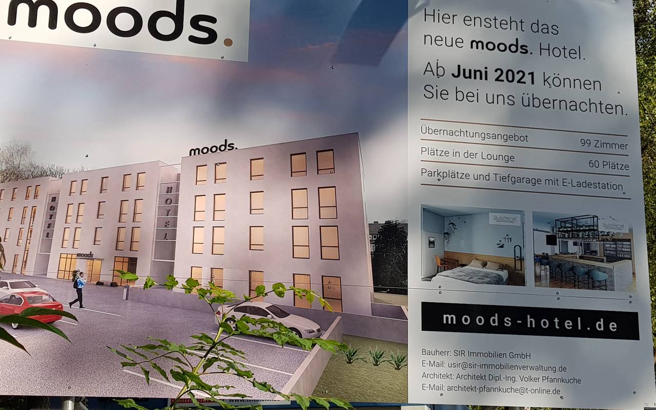 An der Bundesstraße1 in der Dortmunder Gartenstadt entsteht ein neues Hotel der moods-Kette. Das Low-Budget-drei-Sterne-Hotel soll im Juni 2021 eröffnen. Vor allem Fußball- und Konzerttouristen, aber auch Geschäftsreisende sollen dann in dem viergeschossigen Gebäude übernachten.