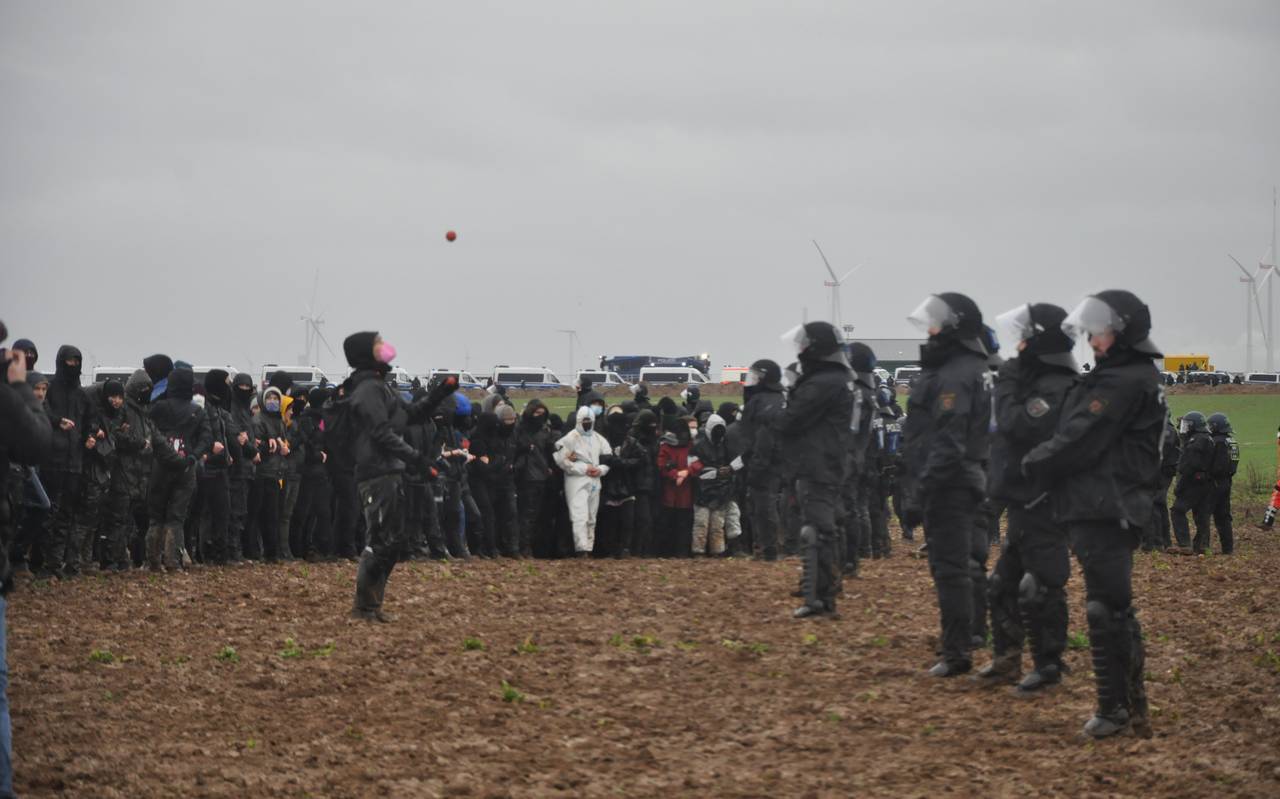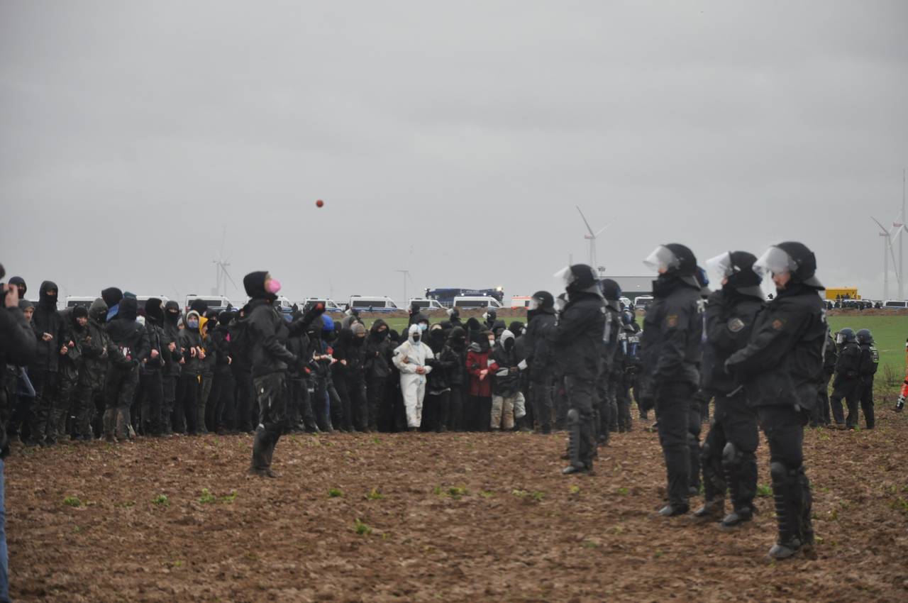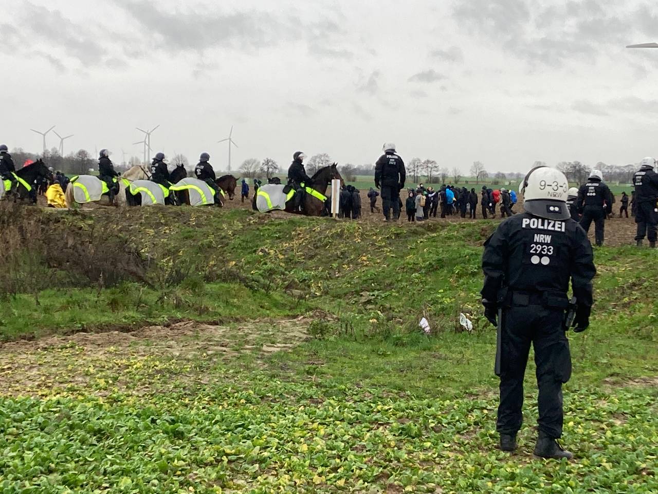 Ein Teil der Demonstranten versuchte, nach Lützerath zu gelangen. Einige versuchten auch, in das Tagebaugebiet durchzukommen. Die Polizei drängte sie gewaltsam zurück. Bis zur Tagebaukante zu laufen, sei lebensgefährlich, weil der Boden durch den Regen aufgeweicht sei und Erdrutsche drohten, warnte die Polizei. "Ich bin absolut entsetzt, wie normale Versammlungsteilnehmerinnen und -teilnehmer sich dazu hinreißen lassen, hier den absoluten Gefahrenbereich zu betreten", sagte der Aachener Polizeipräsident Dirk Weinspach der Deutschen Presse-Agentur. Nach Polizeiangaben attackierten einzelne Demonstranten auch Einsatzwagen der Polizei und warfen Pyrotechnik in Richtung der Beamten. Ein Sprecher erklärte, Reifen seien zerstochen und Außenspiegel abgetreten worden.