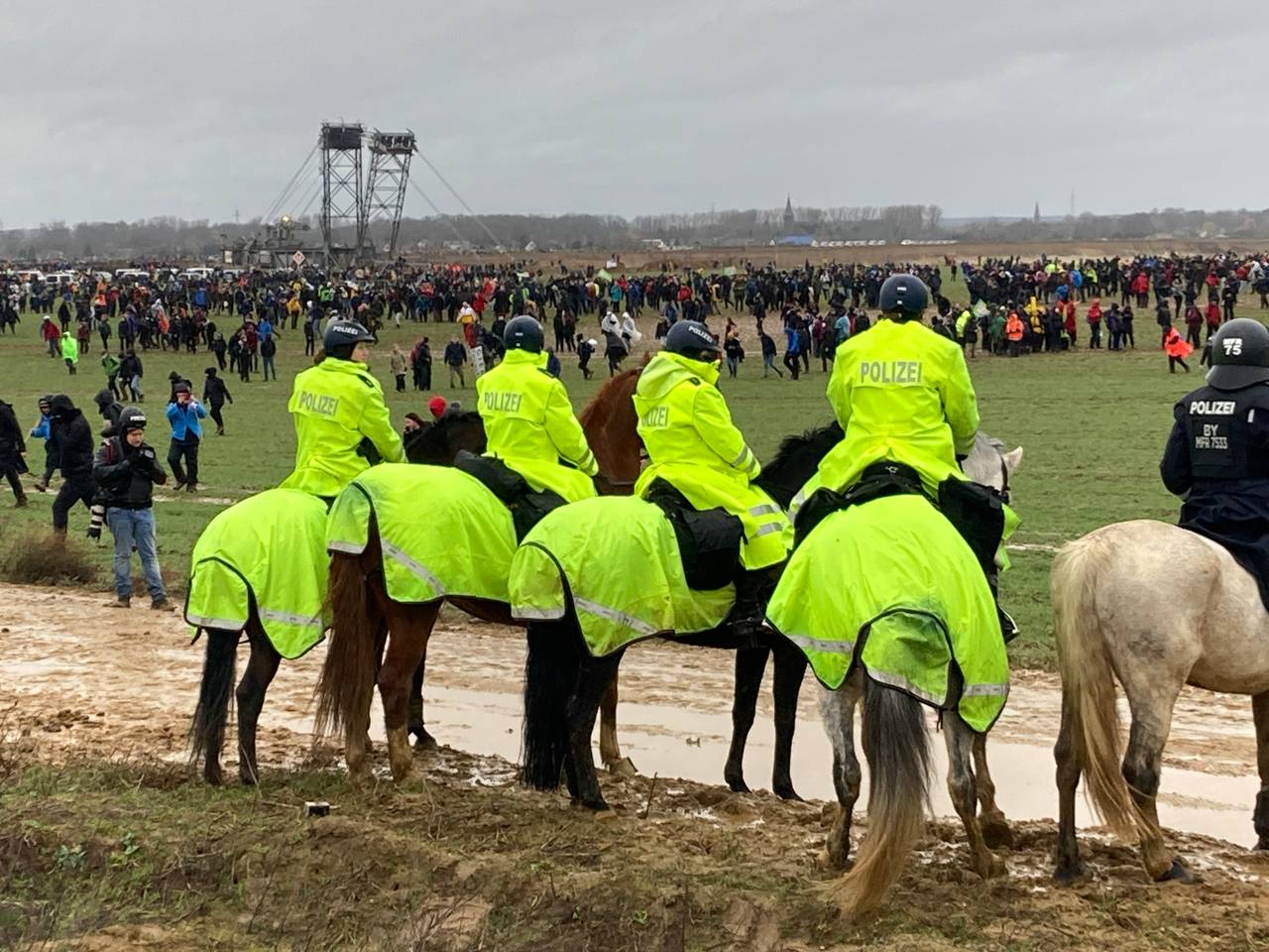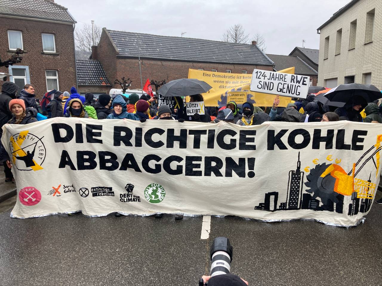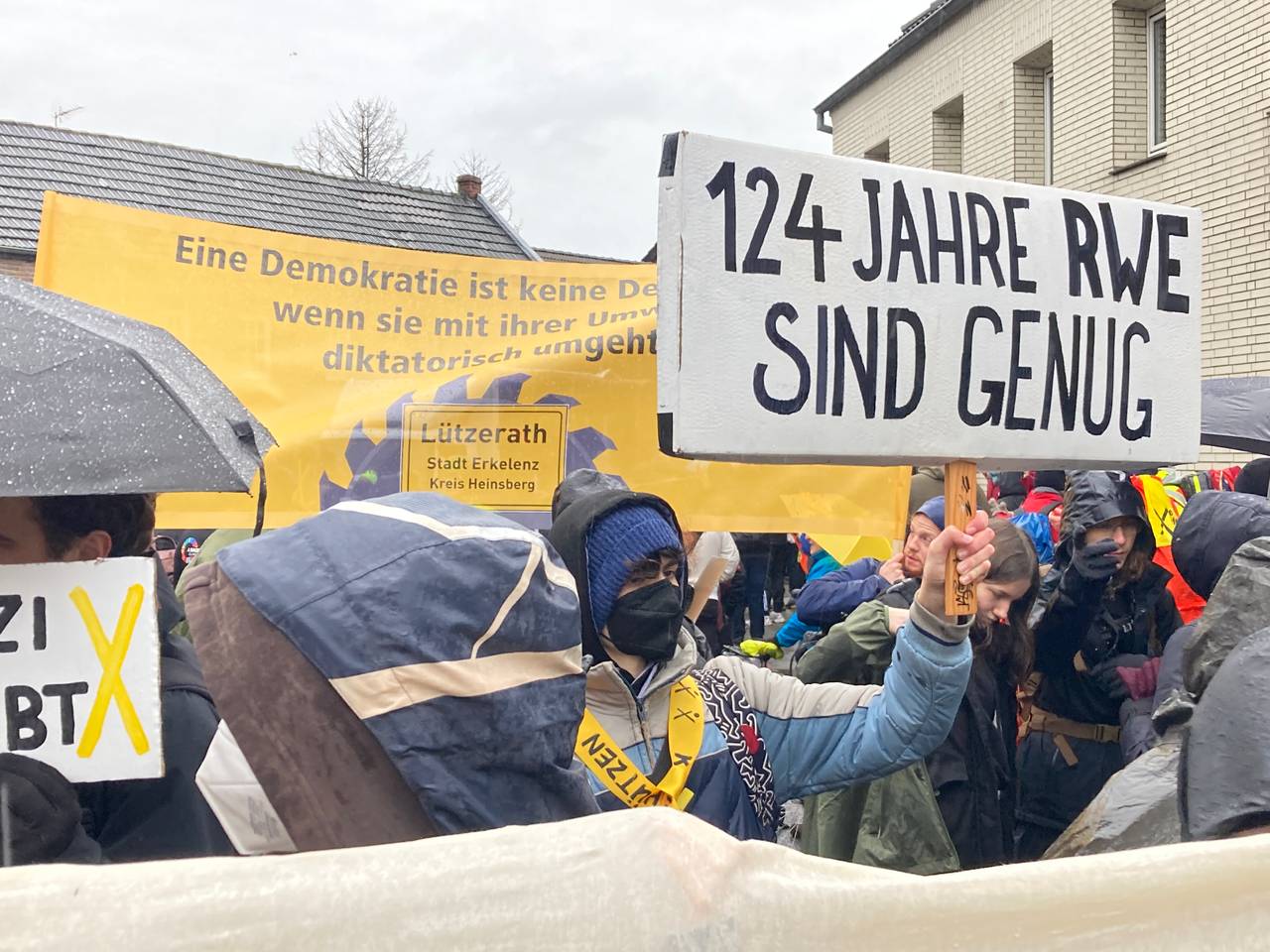 Das kleine Lützerath, ein Ortsteil von Erkelenz westlich von Köln, ist seit Tagen von der Polizei abgeriegelt und mit einem doppelten Zaun umgeben. Die wenigen Gebäude der Siedlung werden derzeit abgerissen, um es dem Energiekonzern RWE zu ermöglichen, die darunter liegende Kohle abzubaggern. Dagegen protestierten am Samstag trotz Dauerregens und starker Windböen viele Tausend Menschen im benachbarten Ortsteil Keyenberg. Die Polizei sprach von 15.000 Teilnehmern, die Veranstalter schätzten die Zahl auf 35.000.