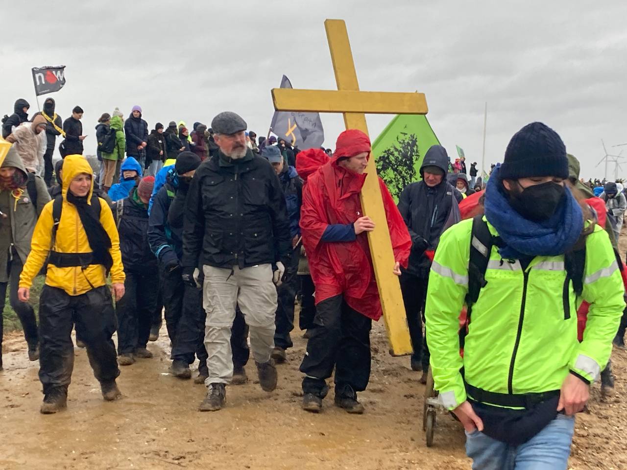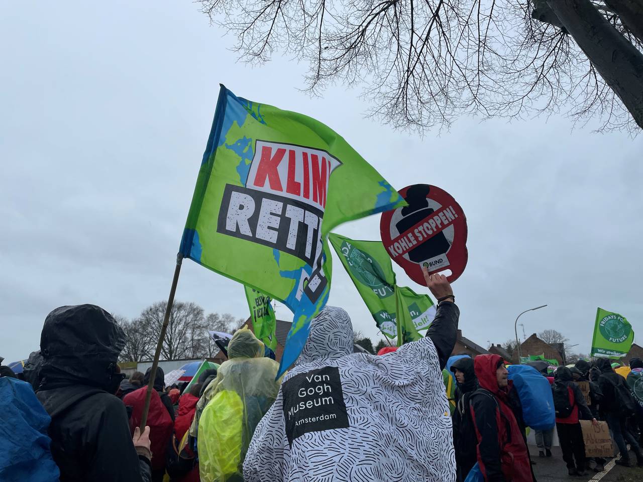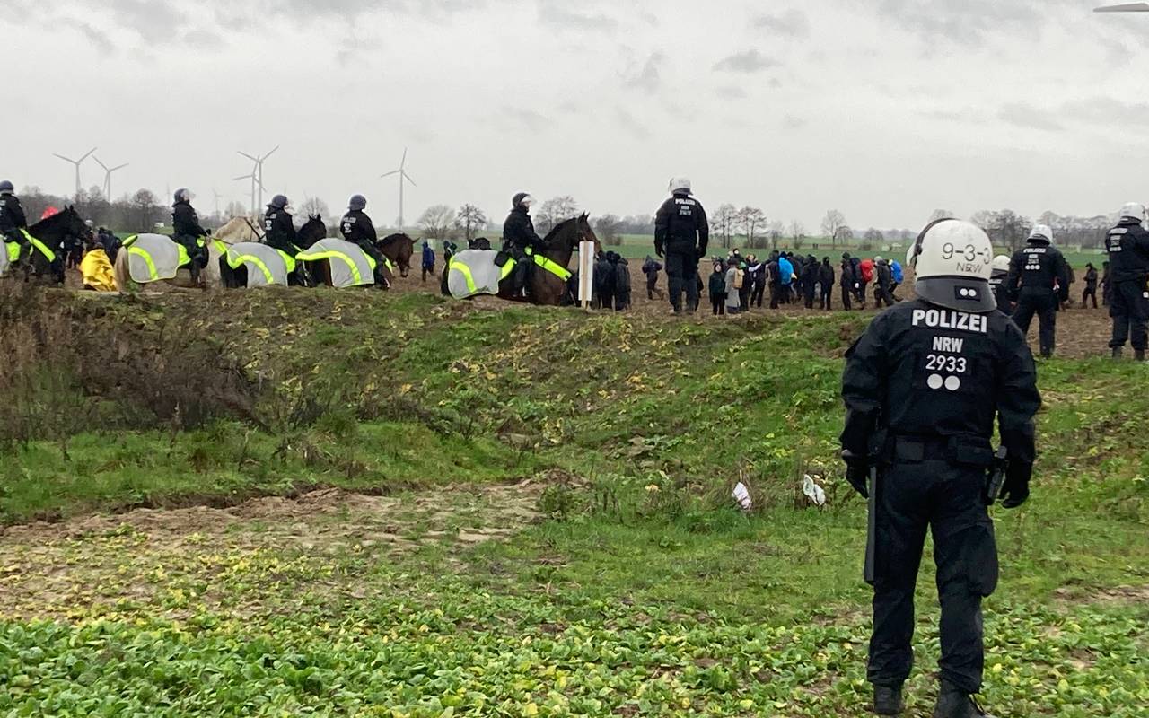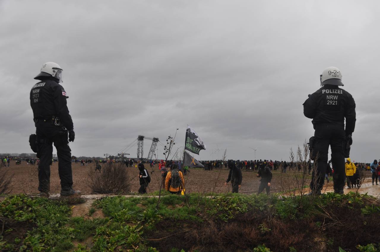 Das kleine Lützerath, ein Ortsteil von Erkelenz westlich von Köln, ist seit Tagen von der Polizei abgeriegelt und mit einem doppelten Zaun umgeben. Die wenigen Gebäude der Siedlung werden derzeit abgerissen, um es dem Energiekonzern RWE zu ermöglichen, die darunter liegende Kohle abzubaggern. Dagegen protestierten am Samstag trotz Dauerregens und starker Windböen viele Tausend Menschen im benachbarten Ortsteil Keyenberg. Die Polizei sprach von 15.000 Teilnehmern, die Veranstalter schätzten die Zahl auf 35.000.