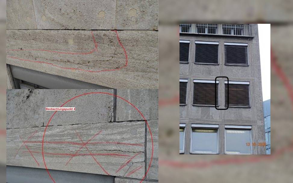 Bei der diesjährigen Inspektion wurden schwerwiegende Mängel festgestellt. Die Westfassade an der Ruhrallee sei erheblichen Erschütterungen durch den Berufsverkehr der B54 ausgesetzt. Deshalb wird sie jetzt eingerüstet. Unter anderem werden die Natursteinplatten abgenommen und ein Unterputz aufgebracht.