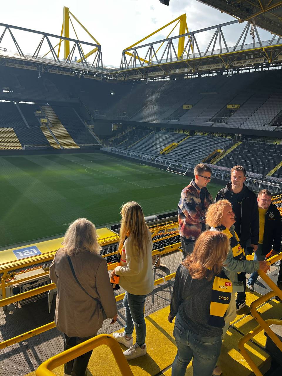 Mit dem DSW21-Tourbus fahren wir zum schönsten Stadion der Welt. Gemeinsam schauen wir hinter die schwarzgelben Kulissen. Wie sieht es in der Borussen-Kabine aus? Wo finden die Pressekonferenzen nach den Spielen statt? Radio 91.2 öffnet die Türen zu Bereichen, die sonst nur Spielern und Mitarbeitern vorbehalten sind. Anschließend lassen wir den Tag beim gemeinsamen Absacker im Mannschaftshotel l'Arrivée entspannt ausklingen.