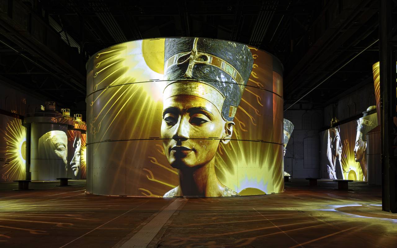 In der Hauptausstellung könnt ihr in das Reich der Pharaonen eintauchen und ins alte Ägypten reisen. Außerdem könnt ihr die farbenfrohen Arbeiten französischer Maler aus dem 19. Jahrhundert bestaunen. Zum Abschluss gibt es noch die zeitgenössische Darstellung "Foreign Nature" mit verborgenen Welten. Die Kunst wird an die Wände und auf den Boden gestrahlt. Dafür sorgen rund 100 Projektoren. Auch ein passender Soundtrack wird gespielt.