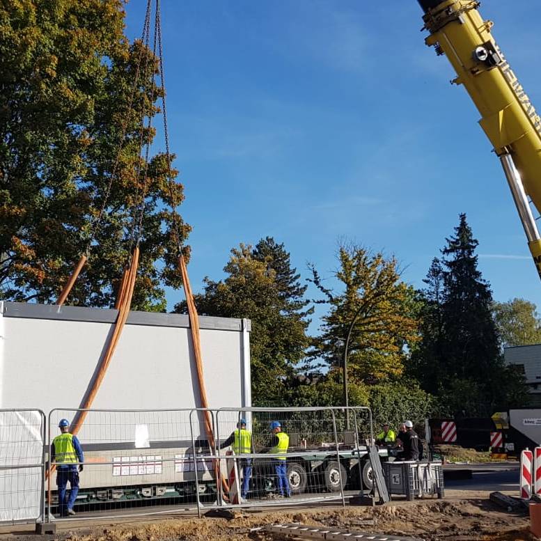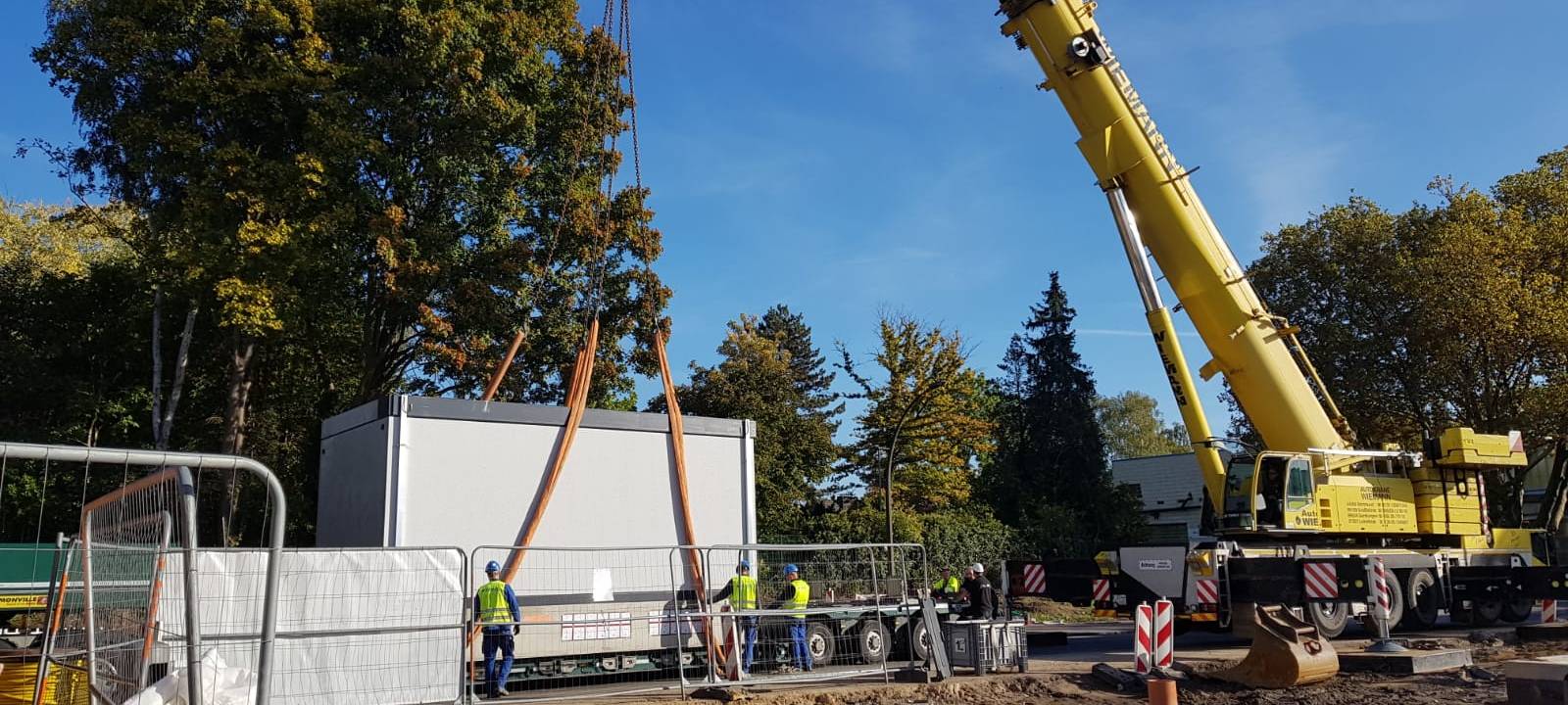 Auf dem Betriebshof der Dortmunder Stadtwerke in Brünninghausen ist am Freitag (7.10.) die 150 Tonnen schwere Trafostation zur Ladung von Elektrobussen installiert worden.