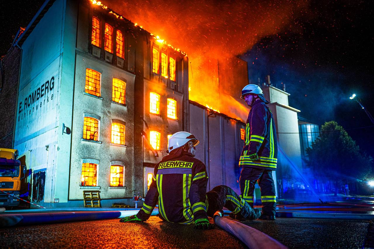 Das Foto beeindruckt zum einen formal durch die geradezu künstlerisch anmutende Komposition und Farbgebung, zum anderen inhaltlich durch die berührende Dokumentation eines Moments der Erschöpfung und des Innehaltens inmitten des stundenlangen Kampfes der Feuerwehrleute gegen die Flammen. In Lokalredaktionen sind Fotografinnen und Fotografen oftmals spontan und auch nachts unterwegs, um zu berichten. Daniel Schröder suchte sich bei diesem Einsatz eine Perspektive, die nicht nur das Ereignis dokumentierte, sondern auch die Menschen in den Mittelpunkt rückt: Und zwar die Einsatzkräfte, die bis zur Erschöpfung ihren Dienst tun – und das oftmals ehrenamtlich. Das Bild würdigt damit auch den Einsatz der freiwilligen Feuerwehren.