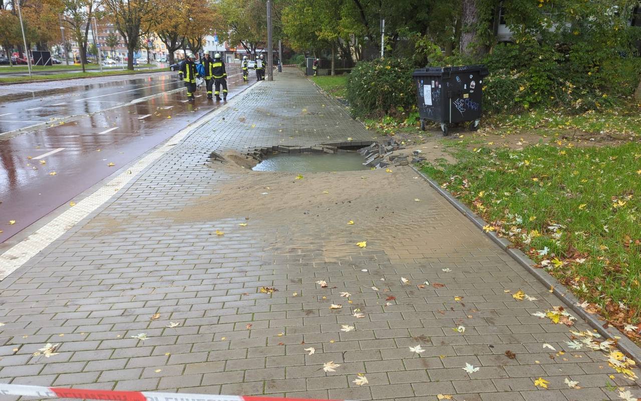 Der Ostwall in der Innenstadt von Dortmund wurde am Dienstagnachmittag (24.10.) mit Wasser überflutet. Die Polizei Dortmund musste deshalb absperren.