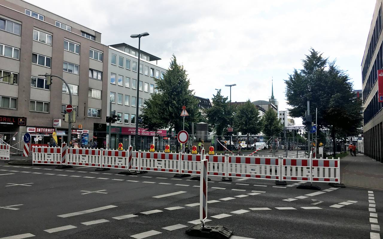 Rund um den Ostwall in der City müssen Autofahrer derzeit mit massiven Staus rechnen. Ostwall und Schwanenwall sind wegen des anstehenden Evangelischen Kirchentages bis Freitag komplett gesperrt. Die Umleitung führt in Richtung Norden über Heiliger Weg, Weißenburger Straße, die Jägerstraße und Steinstraße. Gerade zu Zeiten des Berufsverkehrs droht Verkehrschaos.