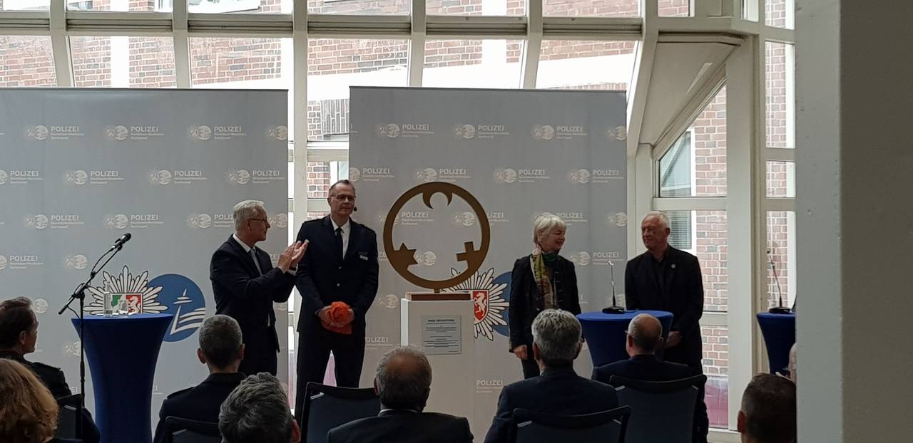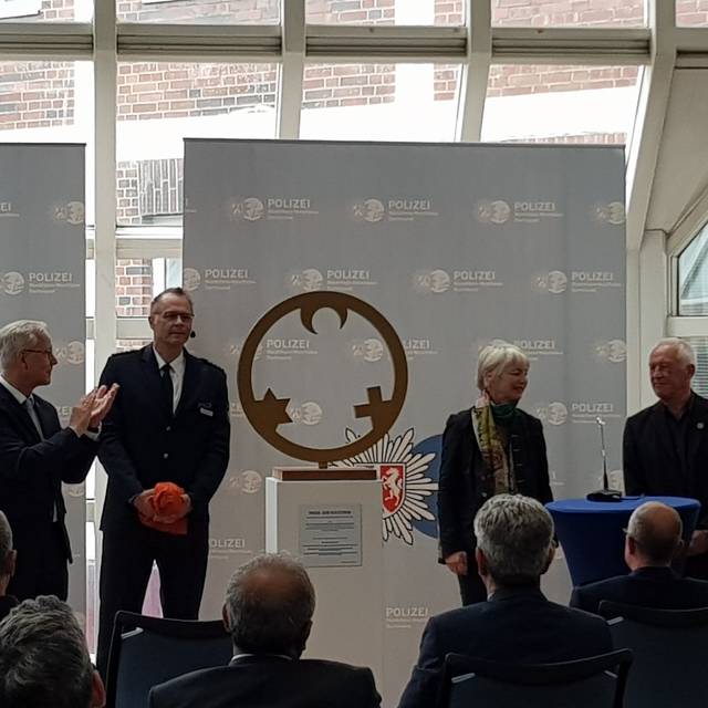 Im Zusammenhang mit Ermittlungen gegen rechtsextreme Polizisten sind heute im Polizeipräsidium zwei Kunstwerke enthüllt worden. Hintergrund für die Aktion sind die Ermittlungen gegen 15 Polizisten aus Dortmund, die sich an rechtsextremen Chats beteiligt haben sollen.