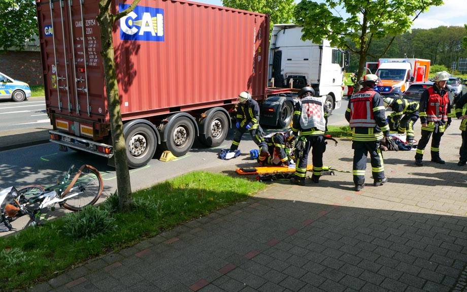 Am Dienstagmittag (23.04.) kam es gegen 11.40 Uhr zu einem schweren Unfall in Dortmund-Eving. Die Radfahrerin hat den Unfall nicht überlebt. Die 73-jährige aus Dortmund war laut Polizei unter einen Sattelzug geraten. Ein 67-jähriger Lüner war demnach mit seinem LKW auf der Evinger Straße Richtung Norden unterwegs und wollte rechts in die Kemminghauser Straße abbiegen. Auch die Radfahrerin war auf der Evinger Straße in die gleiche Richtung gefahren, wollte die Kreuzung aber offenbar geradeaus überqueren. Da kam es zum Zusammenstoß. Die Seniorin aus Dortmund stürzte und wurde einige Meter vom LKW mitgeschleift. Weitere Ermittlungen zum Unfallhergang dauern noch an.